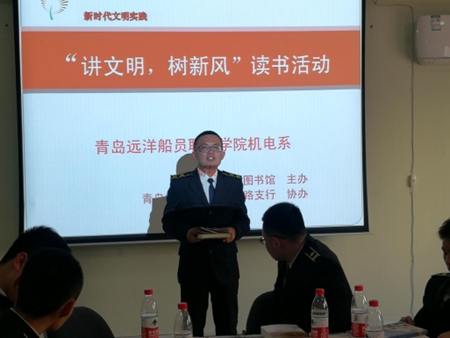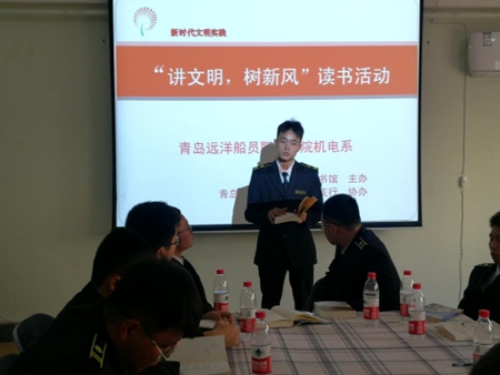 青島遠洋船員職業(yè)學(xué)院一直致力于學(xué)生們文明新風(fēng)的培養(yǎng),定本月為“文明新風(fēng)月”并圍繞此主題開展各種活動。機電系分團委書記周興峰同志積極響應(yīng)學(xué)院號召,為培養(yǎng)大學(xué)生們熱愛學(xué)習(xí)、刻苦鉆研的精神,組織開展本次讀書活動,引導(dǎo)學(xué)生“樂讀書、讀好書”!在周老師的組織帶領(lǐng)下機電系學(xué)生紛紛踴躍報名參加。