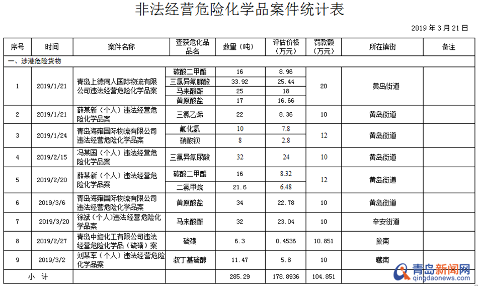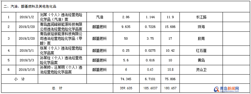 青島新聞網(wǎng)3月22日訊(記者 江東旭)記者近日從青島西海岸新區(qū)應(yīng)急管理局了解到,2019年以來(lái),青島西海岸新區(qū)應(yīng)急管理局深入分析?;奉I(lǐng)域存在的安全隱患,多部門協(xié)同強(qiáng)力開展危險(xiǎn)化學(xué)品領(lǐng)域春季“嚴(yán)打攻勢(shì)”,精準(zhǔn)打擊各類非法經(jīng)營(yíng)危險(xiǎn)化學(xué)品行為,在兩個(gè)月時(shí)間內(nèi)連續(xù)查獲了15起非法經(jīng)營(yíng)危險(xiǎn)化學(xué)品案件,查獲涉港危險(xiǎn)化學(xué)品、醇基燃料及汽油、硫磺、叔丁基硫醇等危險(xiǎn)化學(xué)品359.64噸,涉案貨值185.6萬(wàn)元,行政處罰罰款180.657萬(wàn)元。嚴(yán)厲打擊了?;奉I(lǐng)域的違法行為,極大消除了潛在安全隱患。