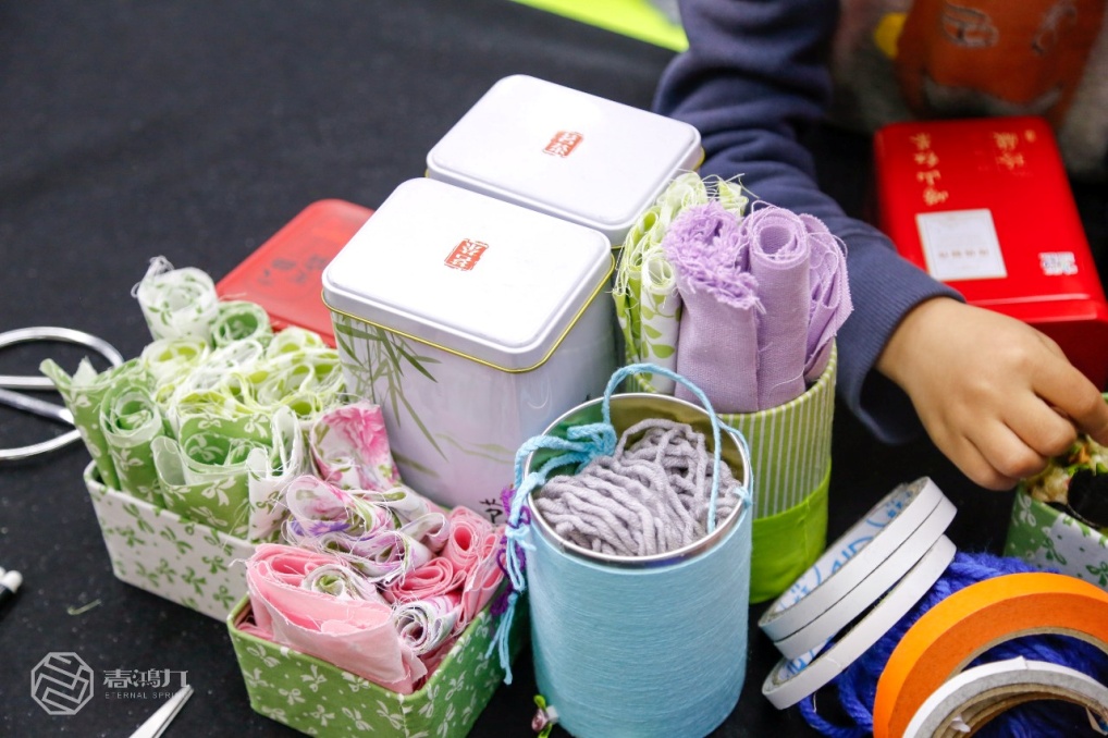 “雨霽風(fēng)光,春分天氣。千花百卉爭(zhēng)明媚?!贝禾斓纳剩撌菧嘏?、明亮的,有了“煥然一新”,才能“賞心悅目”。本次活動(dòng)的實(shí)踐環(huán)節(jié),是別出心裁的收納盒DIY。孩子們從家里帶來(lái)舊茶葉罐,在老師的指導(dǎo)之下,為它們穿上了春天的顏色。