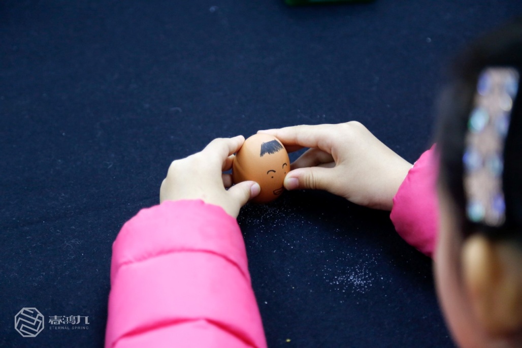 在活動(dòng)現(xiàn)場(chǎng),孩子們?nèi)耸忠幻峨u蛋,聚精會(huì)神地為它們畫(huà)上可愛(ài)的圖案,然后玩起了“豎蛋”游戲。這是一個(gè)古老的民間習(xí)俗,早在4000年前,中華先民就開(kāi)始以“豎蛋”慶賀春天的來(lái)臨,“春分到,蛋兒俏”的說(shuō)法流傳至今,乃至成為了一個(gè)世界性的游戲。