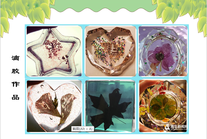 第二部分“寧武海棠花開”,海棠花作為這條路上的絕對主角,不僅裝飾了整條道路,更是寧武關路的精神所在。這里有最美的公交車站,迷人的海灘,還有全國最美的校園青島嘉峪關學校,同學們在這里學習,在這里繪畫,畫面如詩。負責展示的隊員們還將美麗的花朵、迷人的葉子、閃亮的貝殼等做成了五彩繽紛的滴膠作品獻給評委老師。