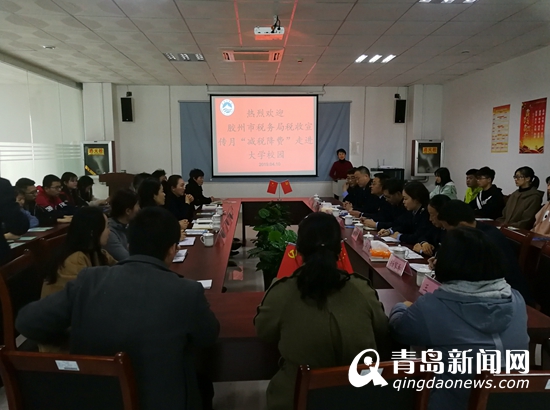 乘著第28個全國稅收宣傳月的春風,4月10日下午,膠州市稅務局減稅降費直通車駛進膠州市高等學府——青島工學院,送去政策講解和暖心服務,讓全院師生盡享改革紅利。