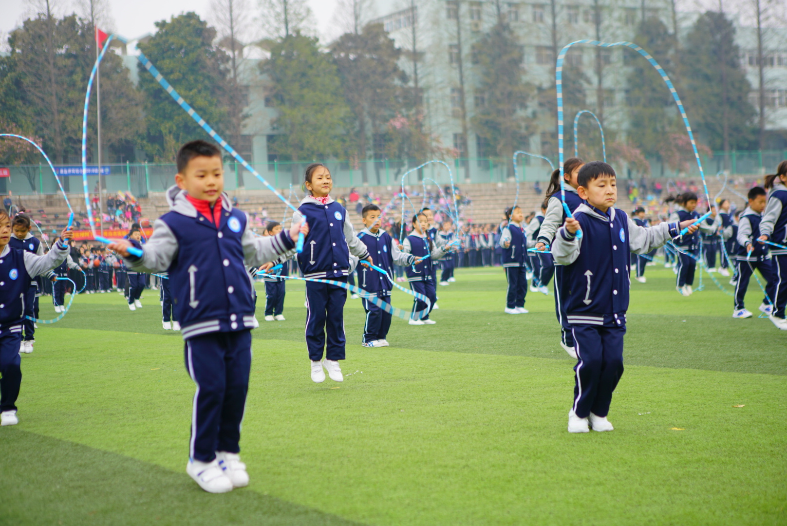 在莊嚴(yán)的升旗儀式結(jié)束后,全校學(xué)生以年級為單位展示著特色運(yùn)動,分別展示了廣播操、中華武術(shù)、籃球操、擊劍操、皮筋操和繩操???,他們伴著動感的音樂,盡顯颯爽英姿。看,小櫸葉朝氣蓬勃,展現(xiàn)著勃勃生機(jī),聽,小櫸葉的口號多么響亮,他們將在運(yùn)動會上一展風(fēng)采,用實(shí)際行動項(xiàng)大家宣告:強(qiáng)身健體,追夢遠(yuǎn)航!
