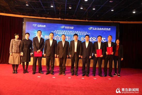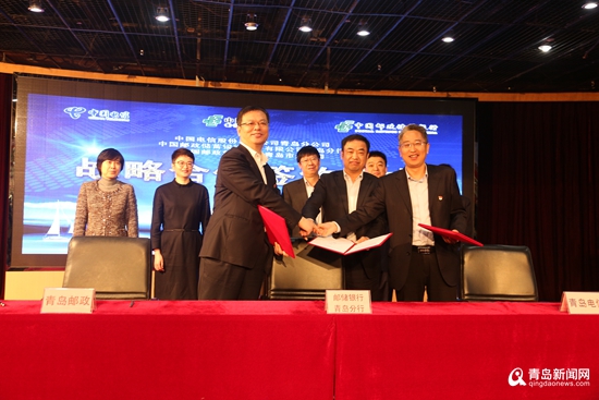 青島新聞網(wǎng)4月18日訊(記者崔文靜)今天,中國電信股份有限公司青島分公司、中國郵政儲蓄銀行股份有限公司青島分行、中國郵政集團公司青島市分公司三方簽署戰(zhàn)略合作協(xié)議。