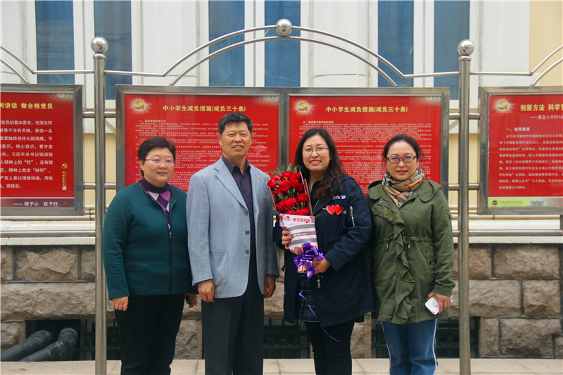接著,活動(dòng)又來(lái)到了位于德縣路27號(hào)的青島市第七中學(xué),向正在工作崗位上的隋淑春同志送上了鮮花。