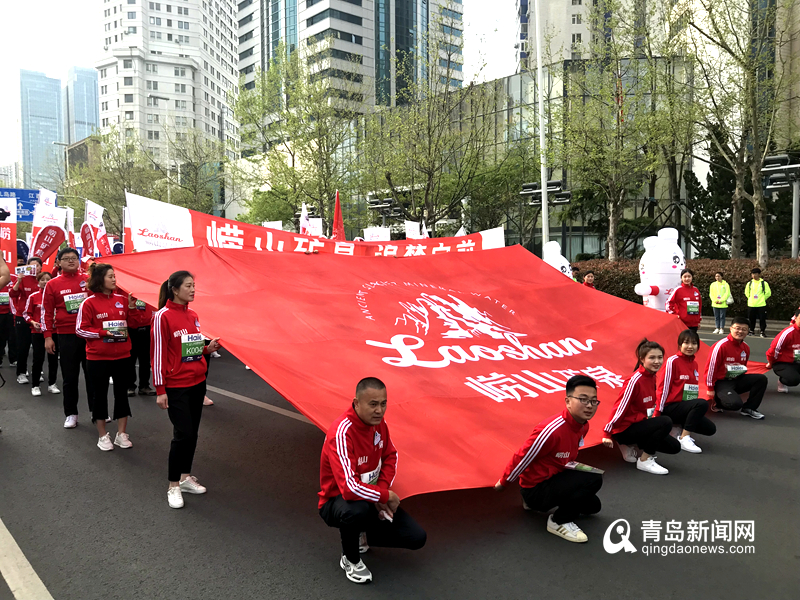 青島馬拉松開幕式現(xiàn)場,紅色的嶗礦和藍(lán)色的華東葡萄酒組成的160人企業(yè)方陣,成了一道亮麗的風(fēng)景線。