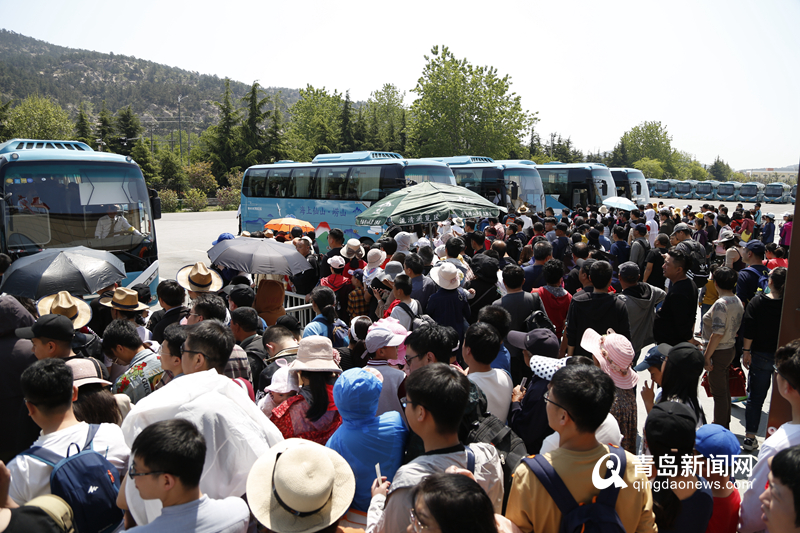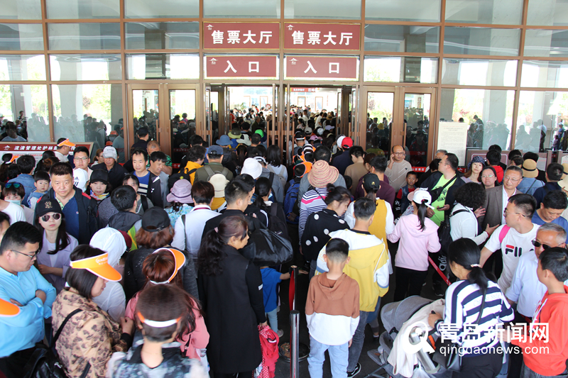5月4日,嶗山風(fēng)景區(qū)售票大廳依然人擠人。