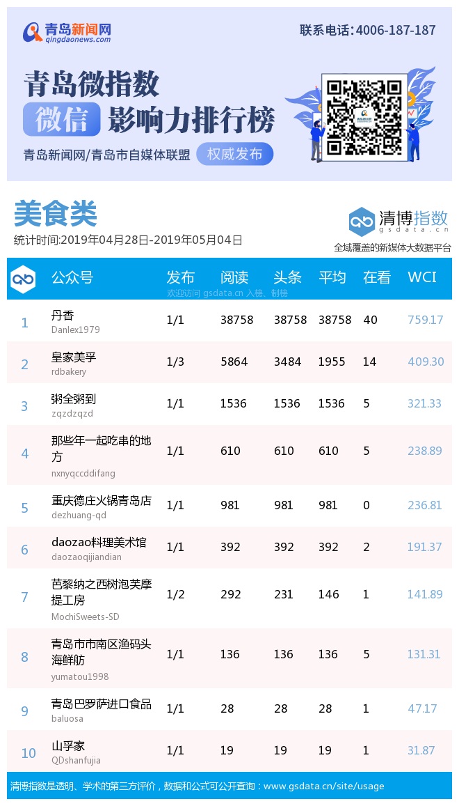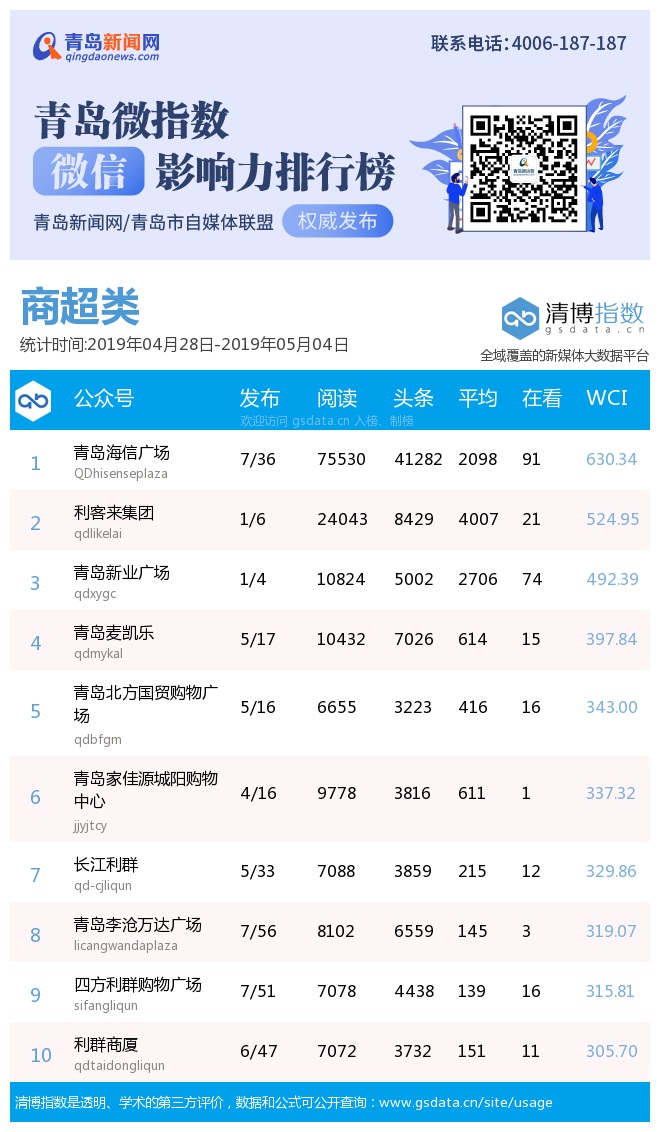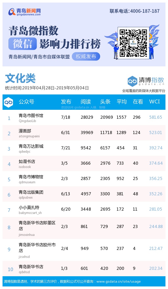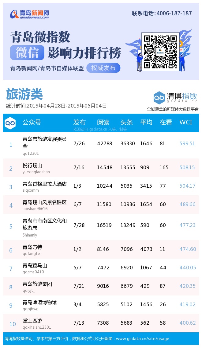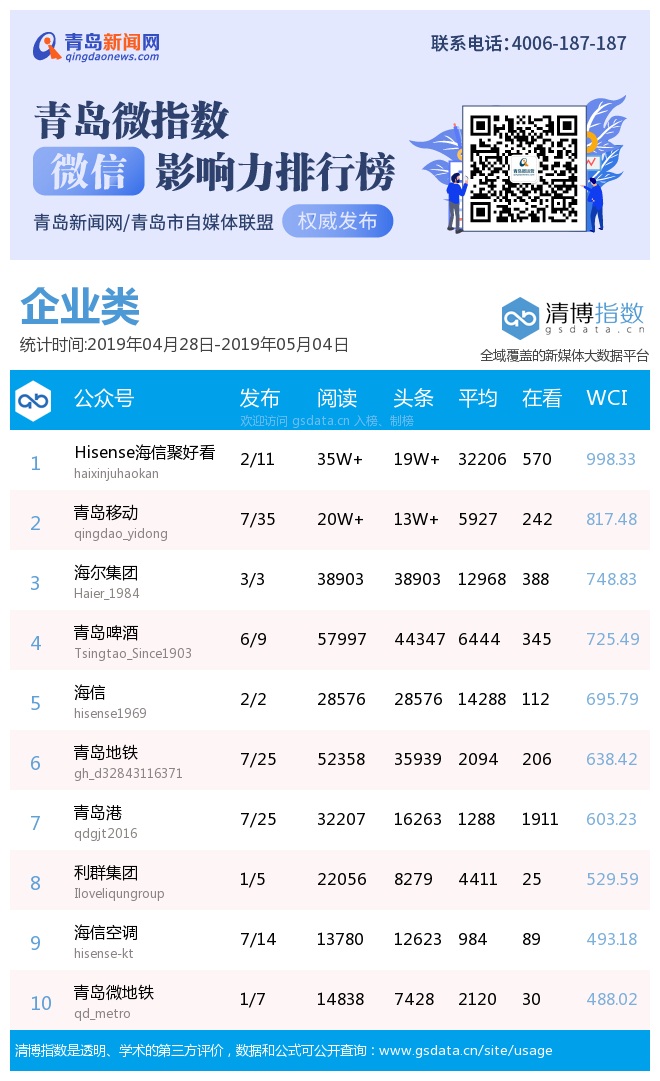 3、本次榜單收錄了青島14個行業(yè)微信公眾號,如您的賬號暫未收錄,可聯(lián)系4006-187-187。
