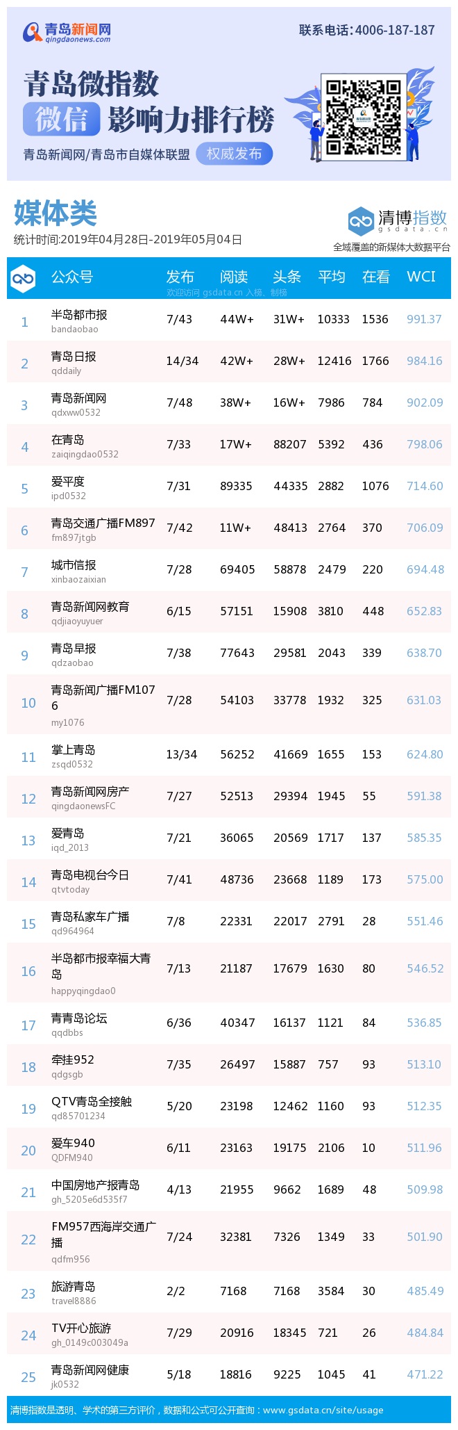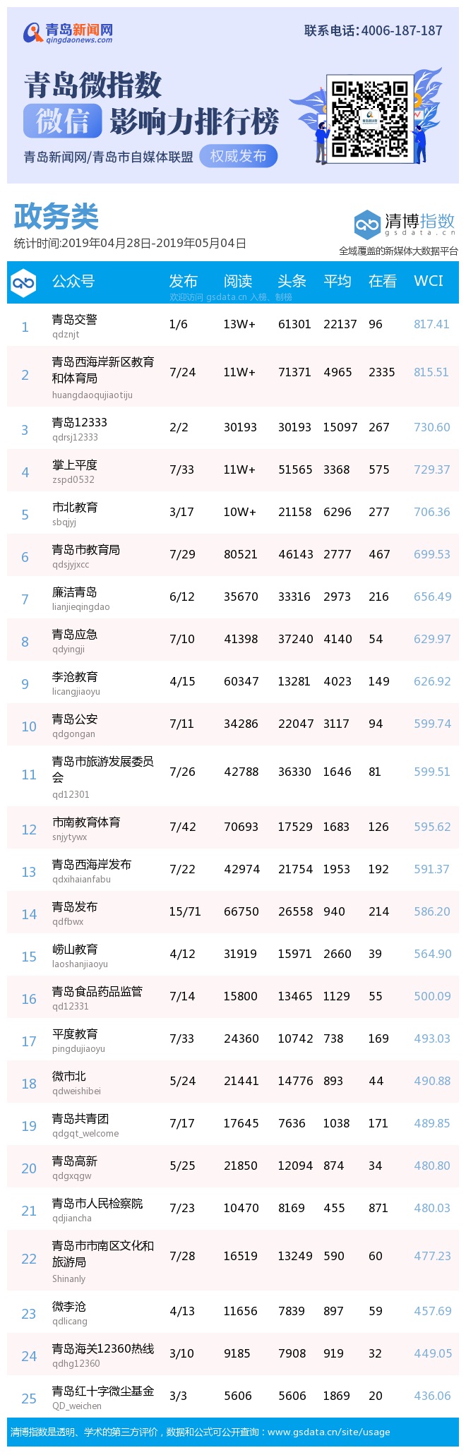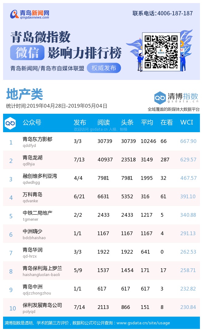 3、本次榜單收錄了青島14個行業(yè)微信公眾號,如您的賬號暫未收錄,可聯(lián)系4006-187-187。
