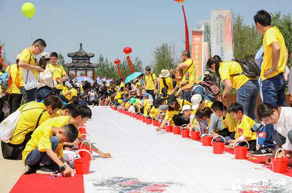 更值得一提的是,近百組家庭聯(lián)合開展的“國色天香盛世中華”兒童創(chuàng)意手繪長(zhǎng)卷活動(dòng),將此次旅游日活動(dòng)推向了高潮,現(xiàn)場(chǎng)所有家長(zhǎng)和孩子們揮毫潑墨、涂添色彩,共同創(chuàng)作長(zhǎng)卷畫,勾勒著心中的夢(mèng)想和純真的童年,“園區(qū)的牡丹花非常漂亮,我們拍了很多好看照片,同時(shí)我們也把所看到的畫了下來,非常有意義?!蔽骱0队慰脱ε勘硎?。