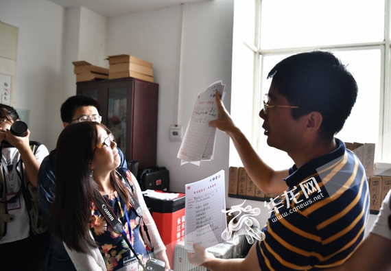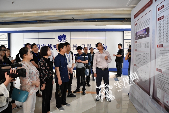 長(zhǎng)江師范學(xué)院黨委常委、宣傳部部長(zhǎng)盛全生為記者們介紹學(xué)??蒲袆?chuàng)新平臺(tái)周濤攝