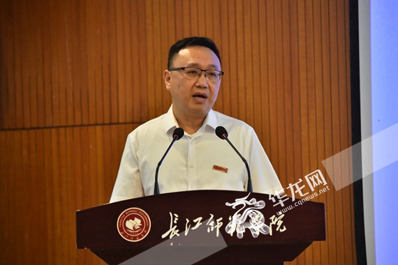 長(zhǎng)江師范學(xué)院黨委書(shū)記彭壽清結(jié)合建設(shè)背景、學(xué)科優(yōu)勢(shì)、人才培養(yǎng)模式等方面介紹“新師范”建設(shè)行動(dòng)計(jì)劃周濤攝