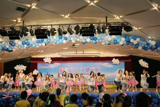 整臺(tái)節(jié)目由全園師幼及家長(zhǎng)共同參與完成,涵蓋器樂、舞蹈、武術(shù)、聲樂、英語(yǔ)話劇、走秀等多種形式,碩果豐盛、精彩紛呈。全體大班幼兒表演的打擊樂《雷神》、《拉德斯基進(jìn)行曲》,男孩舞蹈《有氧搏擊操》、女孩舞蹈《中華禮儀》、小合唱《我的童年時(shí)光》,充分展示幼兒在園三年的學(xué)習(xí)與成長(zhǎng),膾炙人口的旋律、鏗鏘有力的節(jié)奏、神氣十足,自信滿滿,展現(xiàn)他們朝氣蓬勃的精神面貌。中班幼兒也不甘示弱,表演的舞蹈《石頭剪刀布》、武術(shù)《少林英雄》、歌曲串燒《天天向上》、小合唱《最美的光》、詩(shī)朗誦《送別哥哥姐姐》,優(yōu)美的舞姿,甜美的歌聲,他們積極向上,活力四射傳達(dá)出節(jié)日的喜悅。小班幼兒年齡雖小,但是個(gè)個(gè)勁頭十足,他們用稚嫩可愛的動(dòng)作表演了舞蹈《好寶寶》、《我是一顆跳跳糖》、器械律動(dòng)《籃球?qū)氊悺?、英語(yǔ)歌曲串燒《Happy Angel》?;忑g班的幼兒將英語(yǔ)融入童話劇、歌曲串燒,創(chuàng)新節(jié)目形式,增添文化意趣。他們表演了舞蹈《活力女孩》、《炫酷男孩》、英語(yǔ)故事《小蝌蚪找媽媽》、歌曲聯(lián)唱《Baby Animals》,童趣盎然又溫情十足。托班幼兒與爸爸媽媽一起動(dòng)手將海洋元素裝飾在T恤上,上演了一場(chǎng)《寶寶活力秀》,天真無邪,可愛至極。