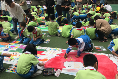 “彩筆繪童心祖國(guó)我愛(ài)你”青島永安路小學(xué)舉行百米長(zhǎng)卷現(xiàn)場(chǎng)繪畫(huà)活動(dòng)