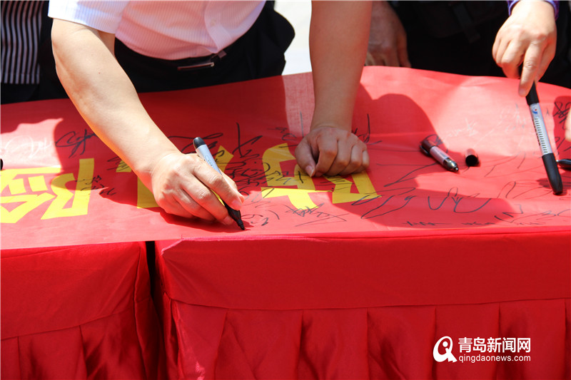 此外在妙趣橫生的安全文藝小演出期間,穿插進行“安全知識知多少”有獎?chuàng)尨稹0l(fā)放《安全生產(chǎn)法》、《安全知識手冊》、《市南區(qū)居民安全常識十個要牢記》、《防災減災從我做起》、《燃氣安全須知》等安全法規(guī)及安全相關(guān)宣傳品2000余份。參與活動人員在活動主題橫幅上進行了爭做安全衛(wèi)士簽名。
