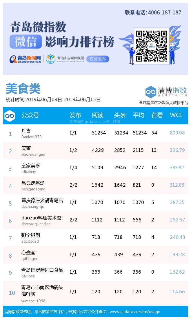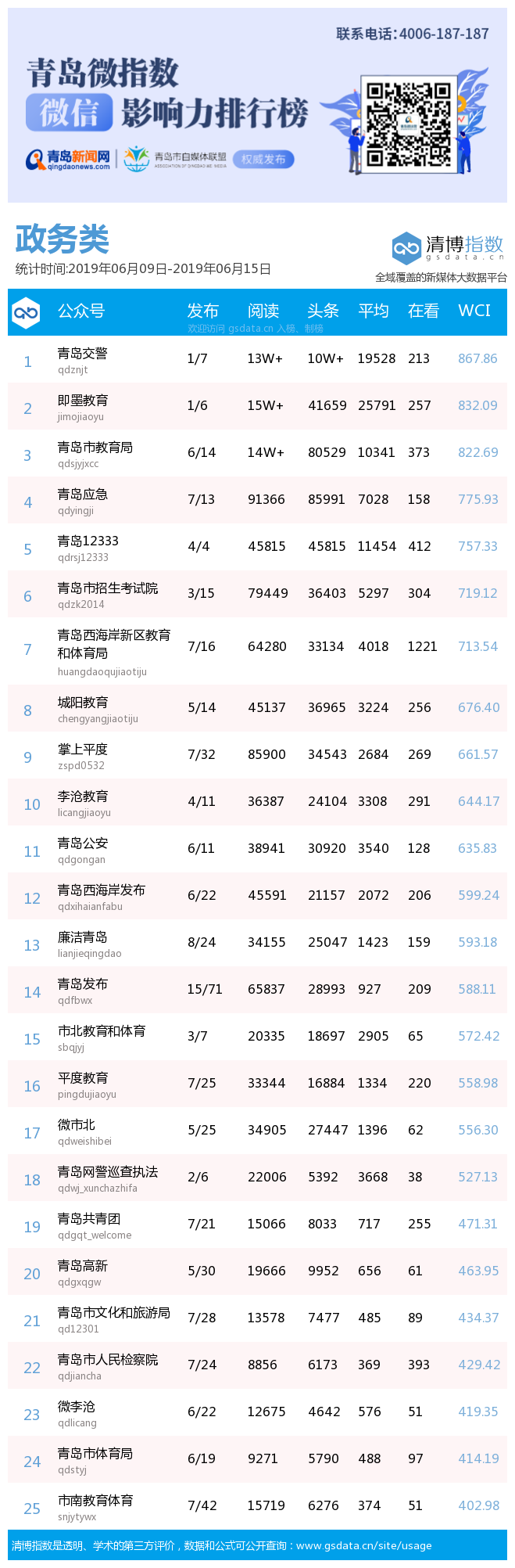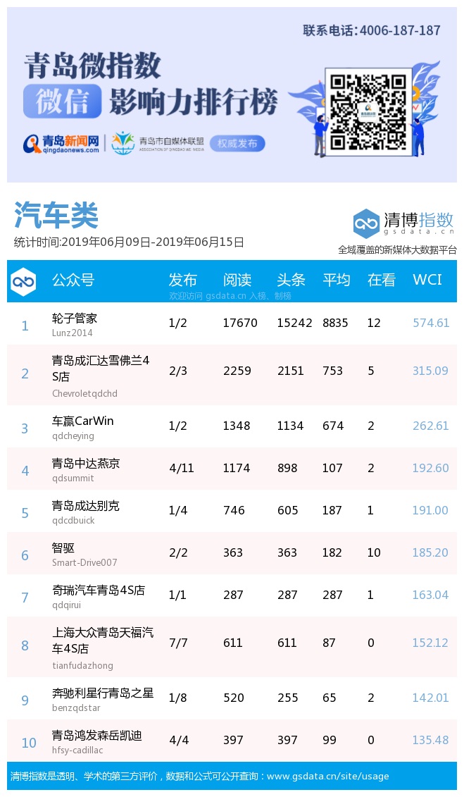 3、本次榜單收錄了青島14個行業(yè)微信公眾號,如您的賬號暫未收錄,可聯(lián)系4006-187-187。