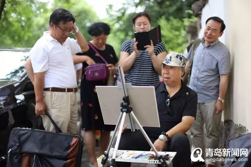 水彩名家關(guān)維興在青島老城區(qū)寫生。