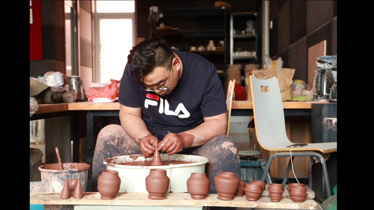 他將泥土以水塑形、經(jīng)火淬煉,凝結(jié)形與色,最終創(chuàng)造出具有人心與煙火氣的陶藝作品。