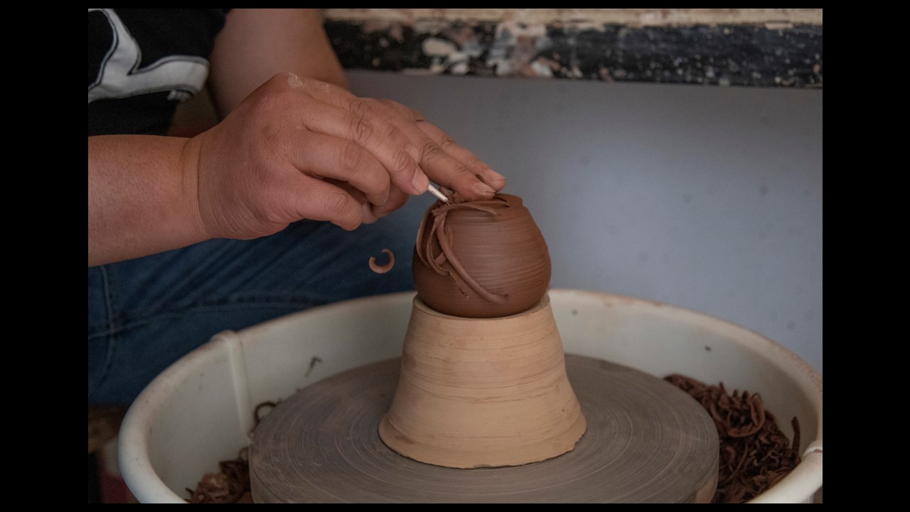 在逼仄擁擠的工作室,日復(fù)一日,年復(fù)一年,與這些器物相伴,與泥巴打交道,讓他的雙手布滿了洗不掉的痕跡。