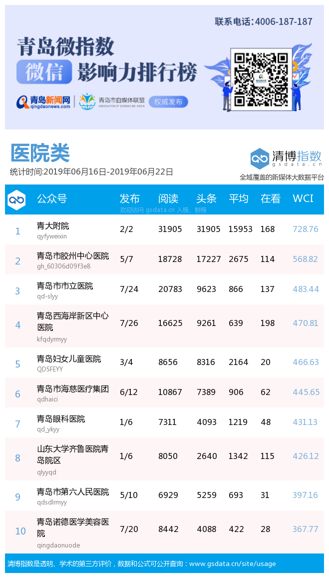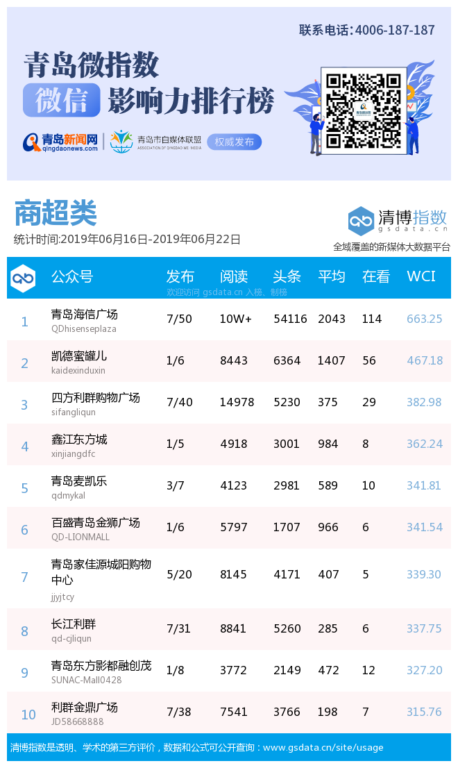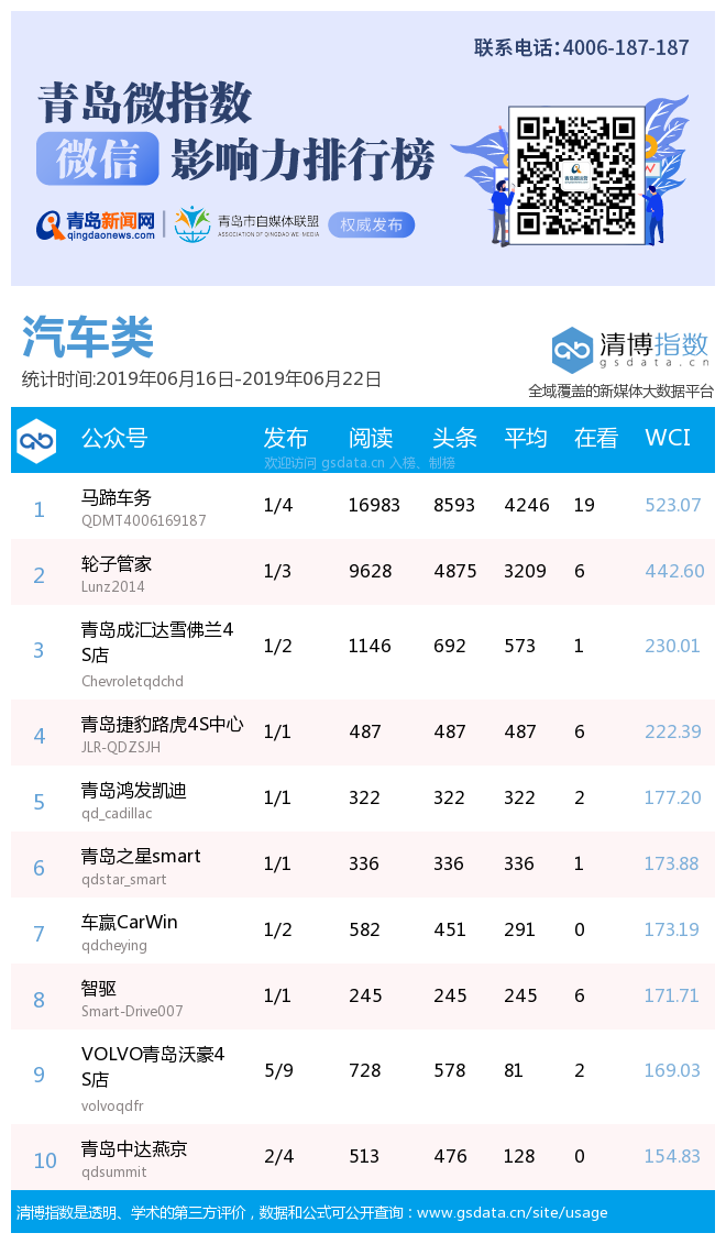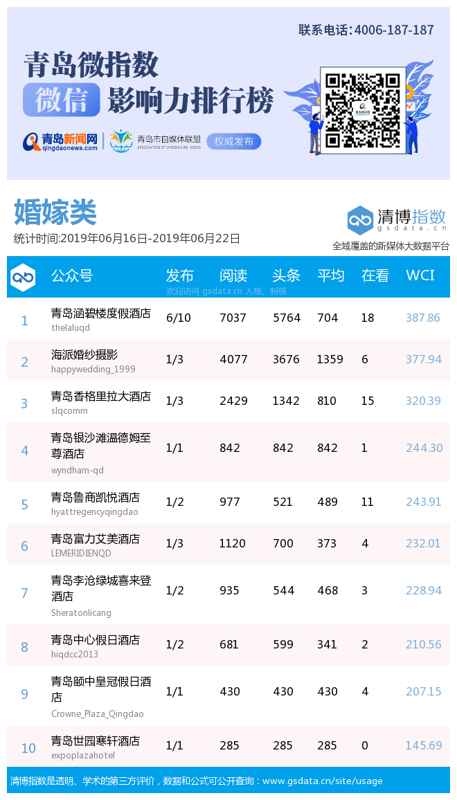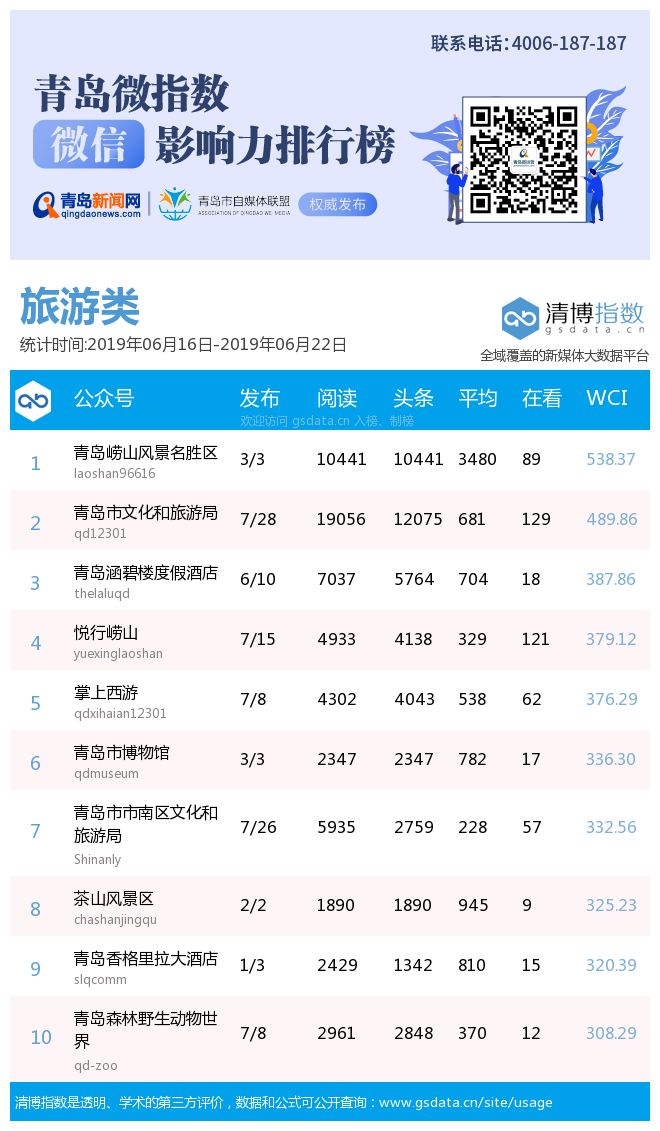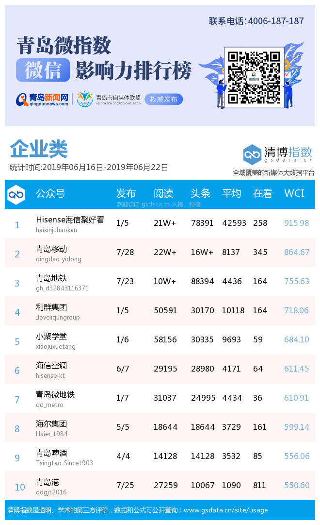 3、本次榜單收錄了青島14個行業(yè)微信公眾號,如您的賬號暫未收錄,可聯(lián)系4006-187-187。