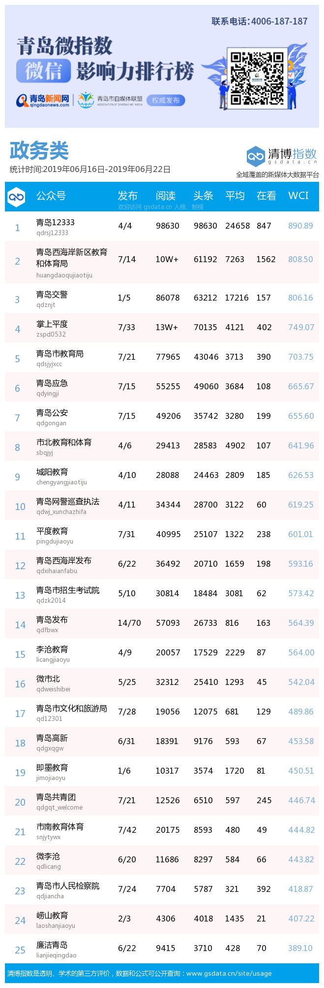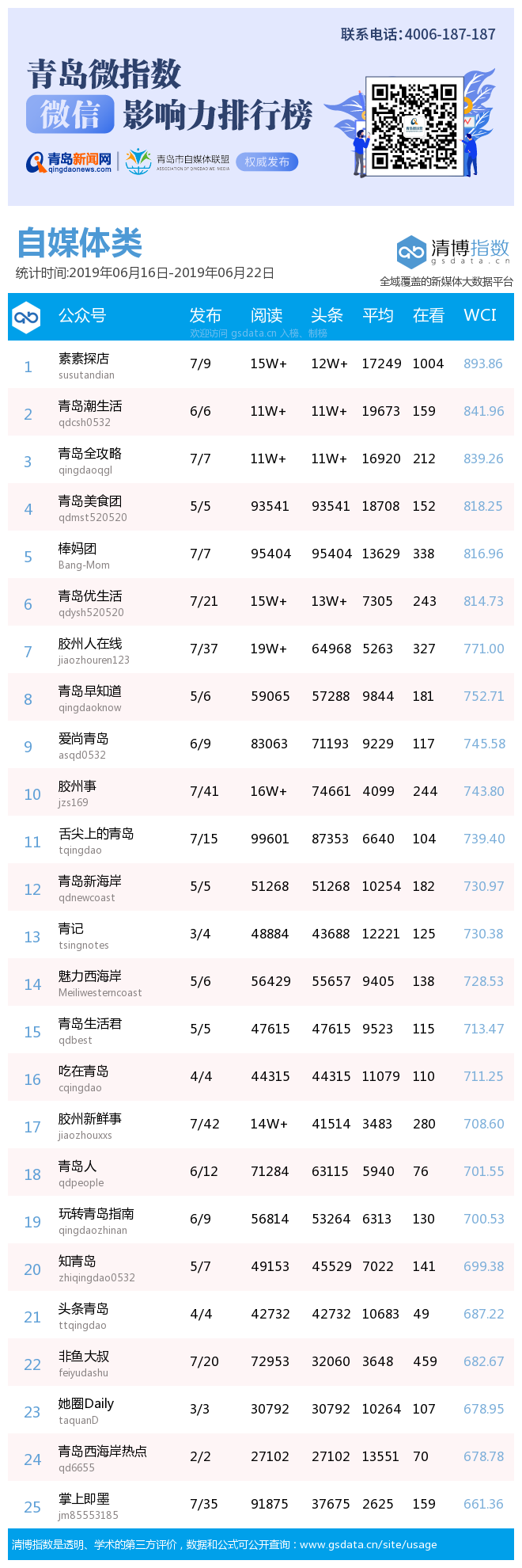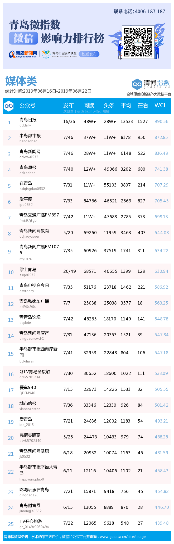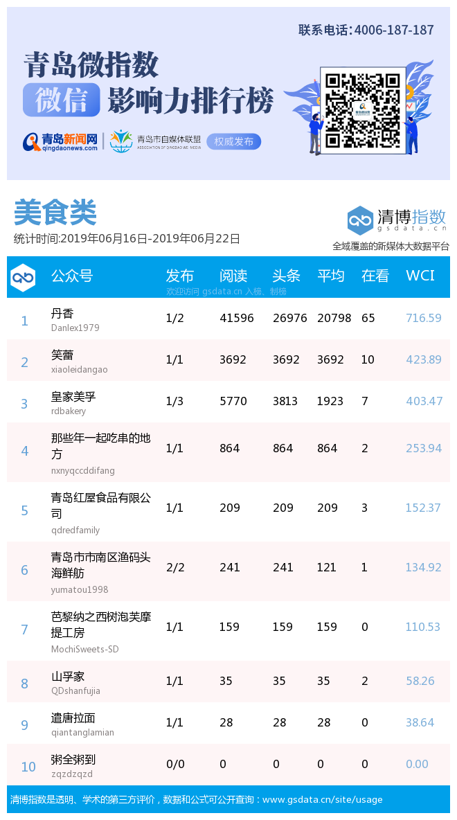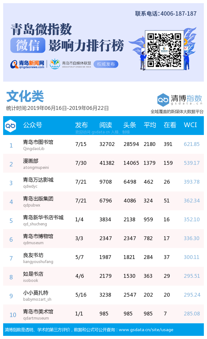 3、本次榜單收錄了青島14個行業(yè)微信公眾號,如您的賬號暫未收錄,可聯(lián)系4006-187-187。