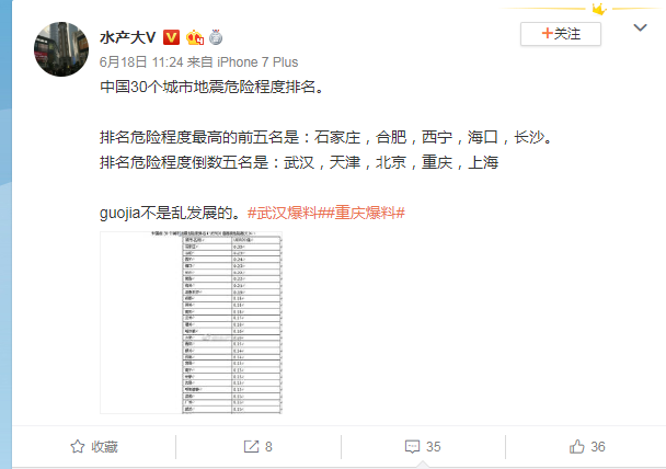 近日,由于長(zhǎng)寧地震,人們對(duì)防災(zāi)減災(zāi)話題高度關(guān)注。網(wǎng)傳一份《中國(guó)30個(gè)城市地震危險(xiǎn)程度排名》將中國(guó)的30個(gè)城市按所謂“地震危險(xiǎn)度”排名,指出“危險(xiǎn)度”最高的是石家莊,合肥,西寧等,而“危險(xiǎn)度”較低的是北京,重慶,上海等。這份排名是否科學(xué)呢?排名越高真的越容易發(fā)生地震嗎?