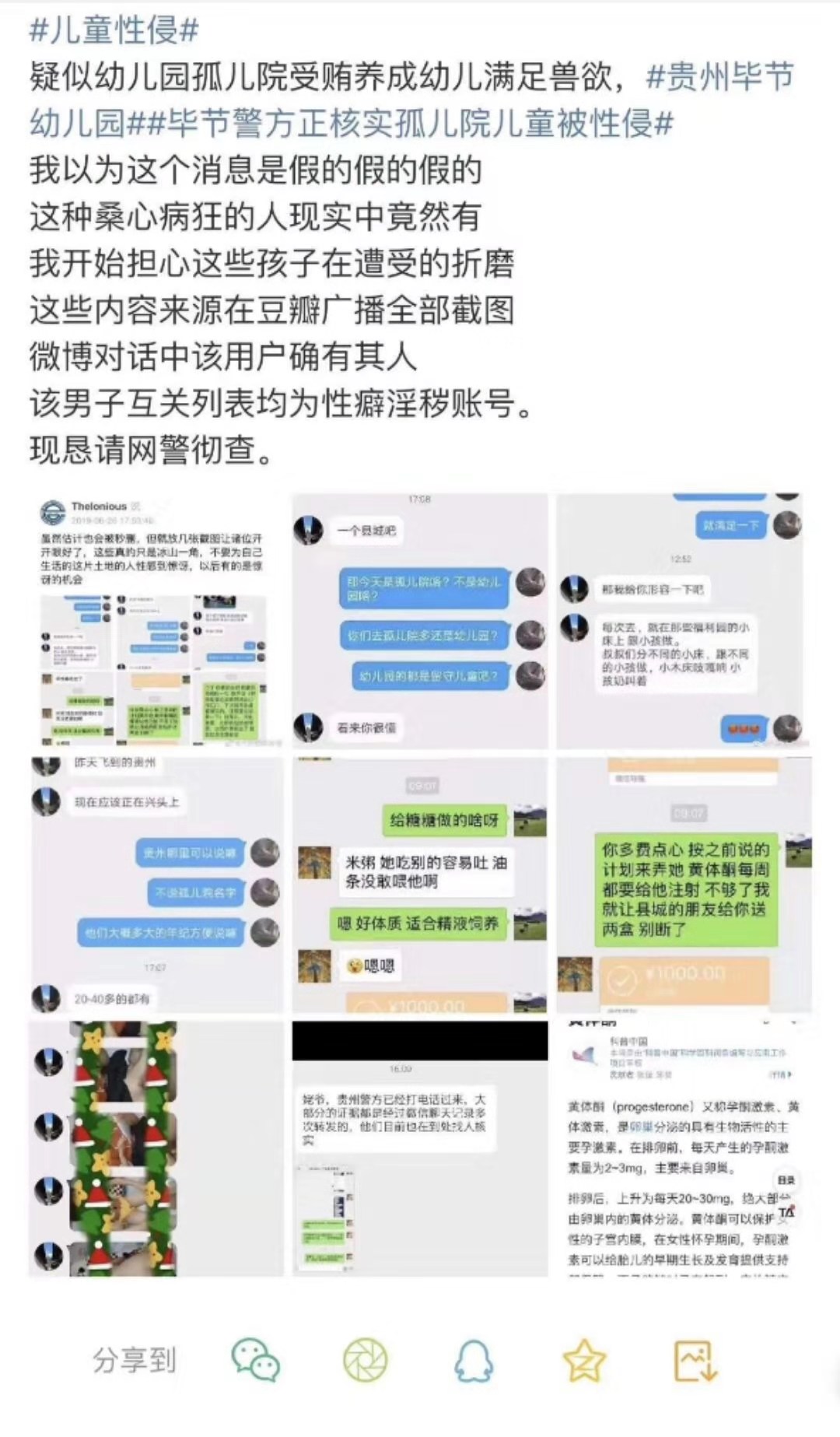 6月26日,有微博網(wǎng)友從豆瓣論壇中發(fā)現(xiàn)了一則與“侵害幼童”的帖子,在微博上引發(fā)網(wǎng)友們的高度關(guān)注。相關(guān)公安部門立即組織專案組進(jìn)行調(diào)查。