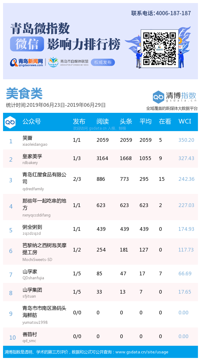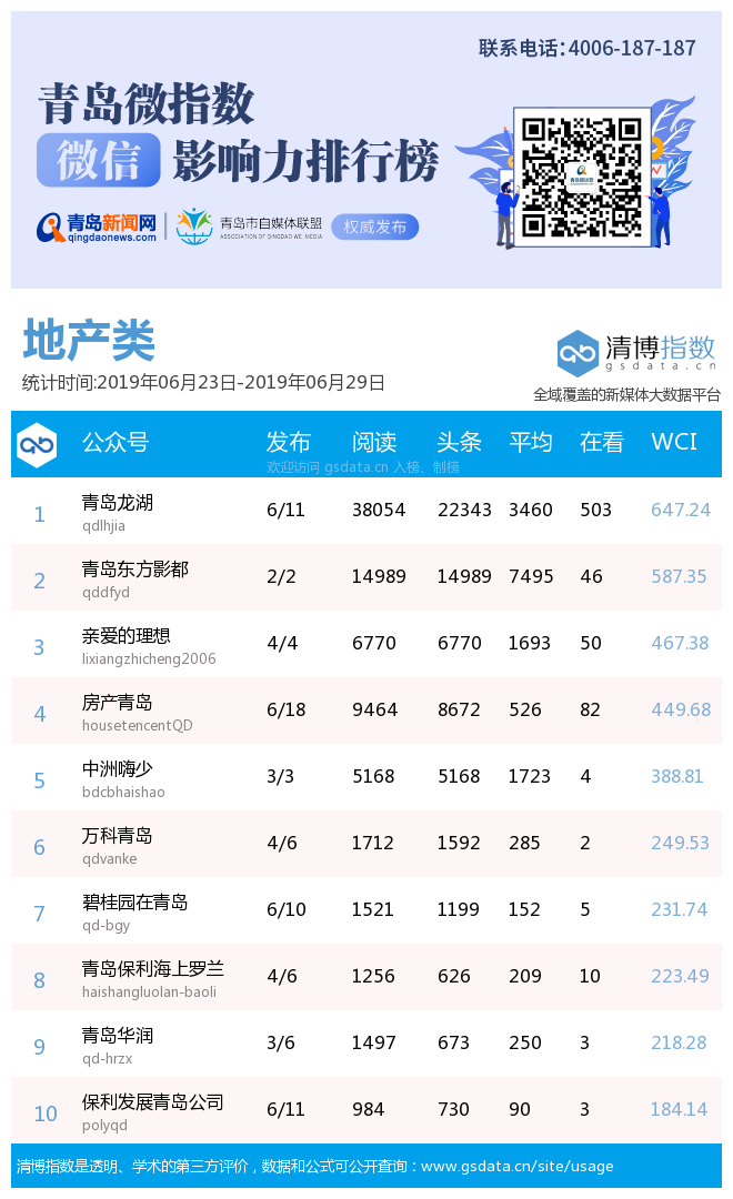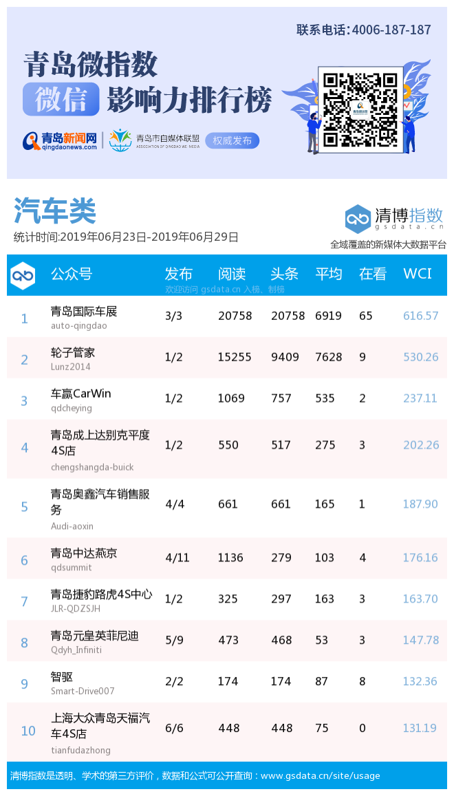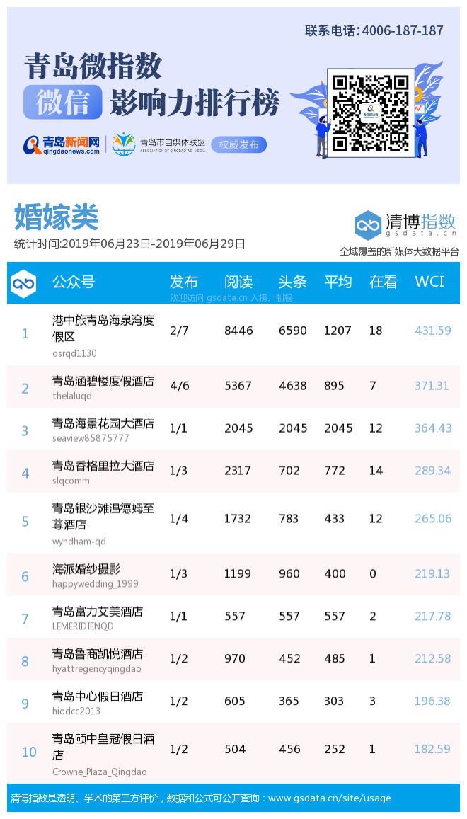 3、本次榜單收錄了青島14個行業(yè)微信公眾號,如您的賬號暫未收錄,可聯(lián)系4006-187-187。