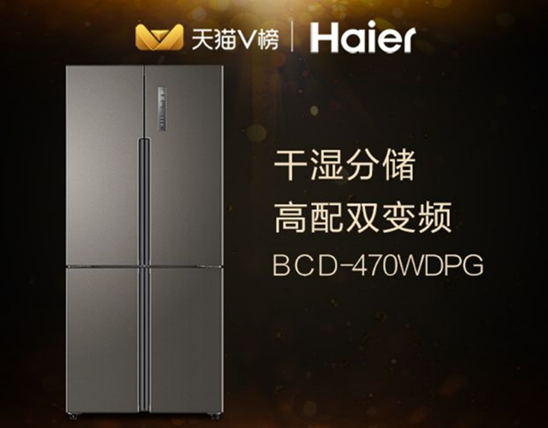 海爾十字對(duì)開(kāi)變頻靜音節(jié)能干濕分儲(chǔ)家用冰箱,型號(hào)BCD-470WDPG,專柜價(jià)4799元,活動(dòng)價(jià)4299元。該款產(chǎn)品干濕分儲(chǔ)的特點(diǎn),能夠保證食物不串味,適用于追求食物品質(zhì)的消費(fèi)者。