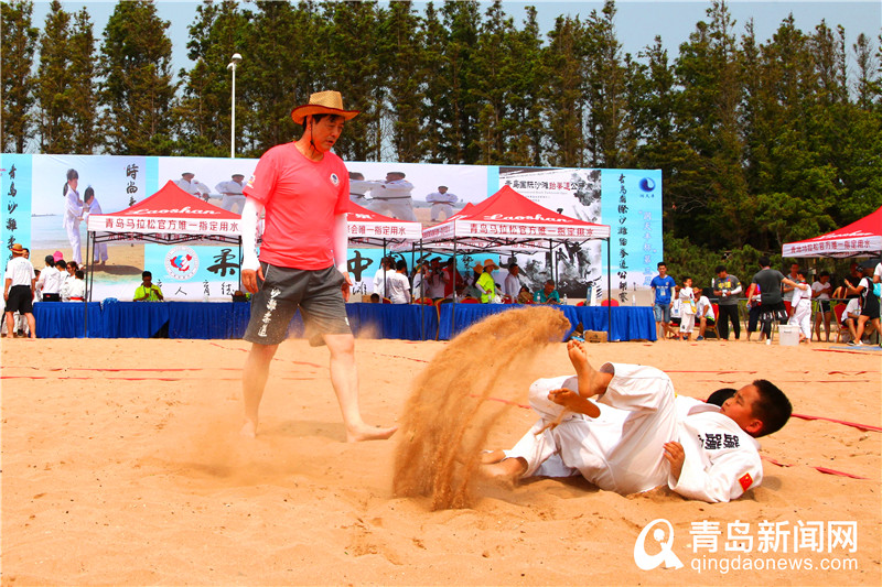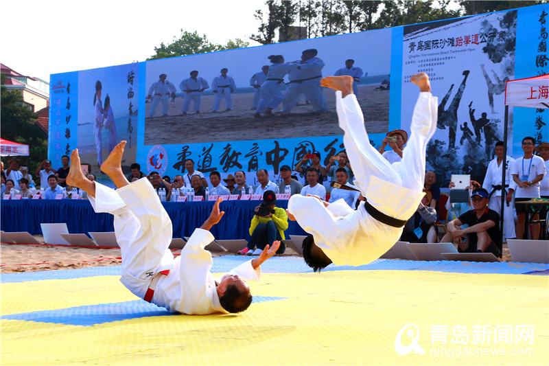青島新聞網(wǎng)7月22日訊 (記者 劉文超)中國(guó)柔道協(xié)會(huì)柔道教育中國(guó)行山東青島站、“嶗山礦泉杯”第六屆青島沙灘柔道賽及“潤(rùn)天豐杯”第三屆青島國(guó)際沙灘跆拳道公開賽在青島第三海水浴場(chǎng)同時(shí)舉行。27個(gè)代表隊(duì)300余名運(yùn)動(dòng)員組成的柔道賽隊(duì)伍和29個(gè)代表隊(duì)500余名運(yùn)動(dòng)員組成的跆拳道隊(duì)伍使第三海水浴場(chǎng)熱鬧非凡,激烈的比賽使這個(gè)夏天充滿激情與活力。