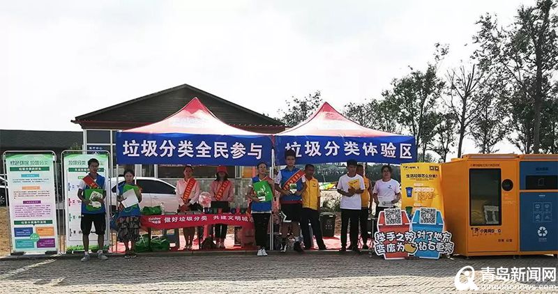 在百花盛開的羊毛溝花海濕地啤酒節(jié)分會場,游客進(jìn)入主入口就能看到醒目的垃圾分類展區(qū)?!袄诸惾駞⑴c”“做好垃圾分類,共建文明城市”的宣傳標(biāo)語清晰可見。城陽區(qū)目前已經(jīng)正式投入使用的“四分類”垃圾分類設(shè)備也集體亮相,如海碩環(huán)保生產(chǎn)的傳統(tǒng)垃圾分類設(shè)施和小黃狗提供的智能垃圾分類設(shè)備,吸引了不少游客主動前來參觀了解。