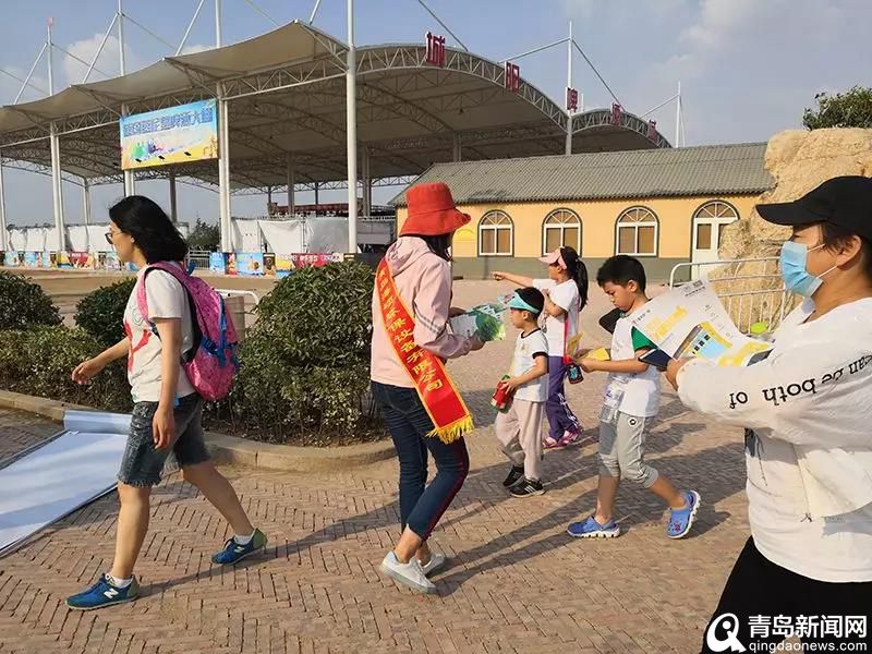 在道路兩側(cè)和主入口,游客都見到了身著垃圾分類統(tǒng)一制服的志愿者和工作人員。他們在不停地向場內(nèi)外游客發(fā)放垃圾分類宣傳單頁,宣傳垃圾分類知識。