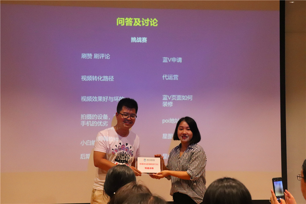 在提問(wèn)環(huán)節(jié),來(lái)自“青島市市立醫(yī)院”、“青島吃貨君”、“愛(ài)尚青島”、“CCTV發(fā)現(xiàn)之旅”、“西北工業(yè)大學(xué)青研院專業(yè)學(xué)位中心”等平臺(tái)的抖音運(yùn)營(yíng)人就各自運(yùn)營(yíng)中存在的問(wèn)題與李世東進(jìn)行了一番探討,得到了李世東以及都會(huì)文化MCN機(jī)構(gòu)其他同事的耐心解答。