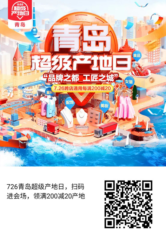 7月26日,“青島超級產(chǎn)地日”活動在阿里1688平臺上線,精選女裝、童裝、配飾、美妝工具、食品五大品類,集結(jié)近千家青島產(chǎn)地企業(yè)、近萬款優(yōu)選好貨,以“源頭貨,一手價”將青島制造優(yōu)質(zhì)產(chǎn)品呈現(xiàn)給全球經(jīng)銷商。