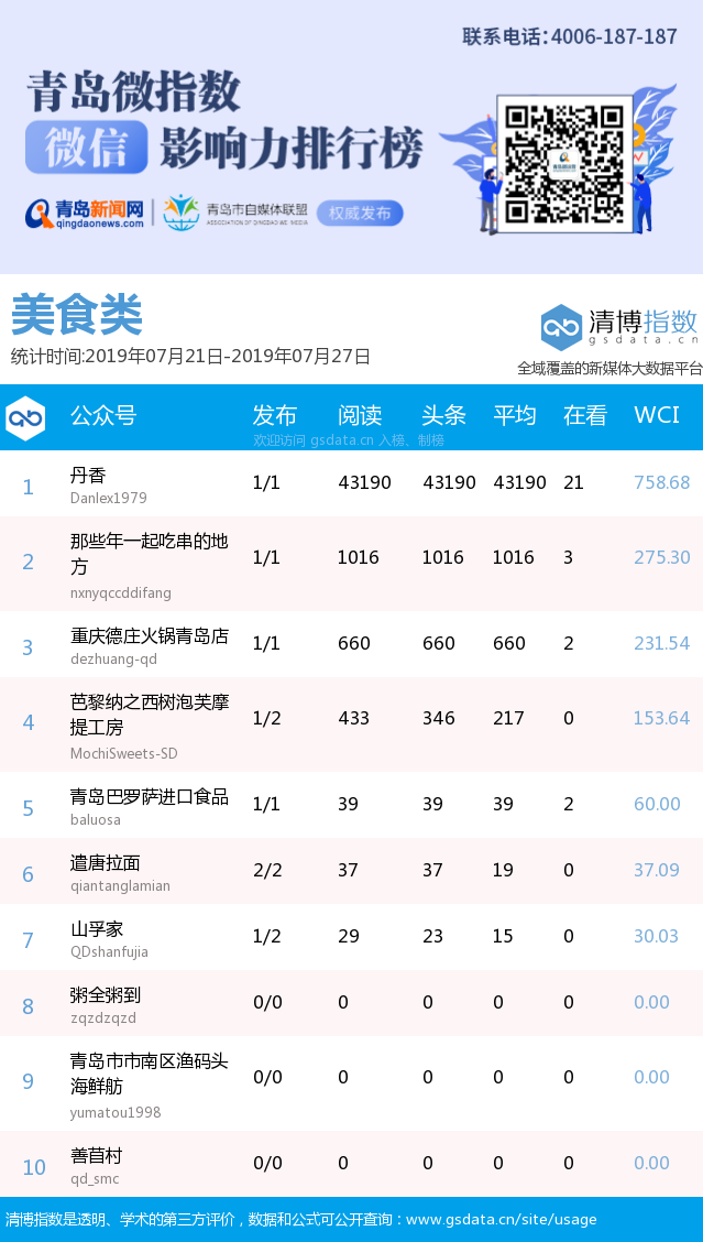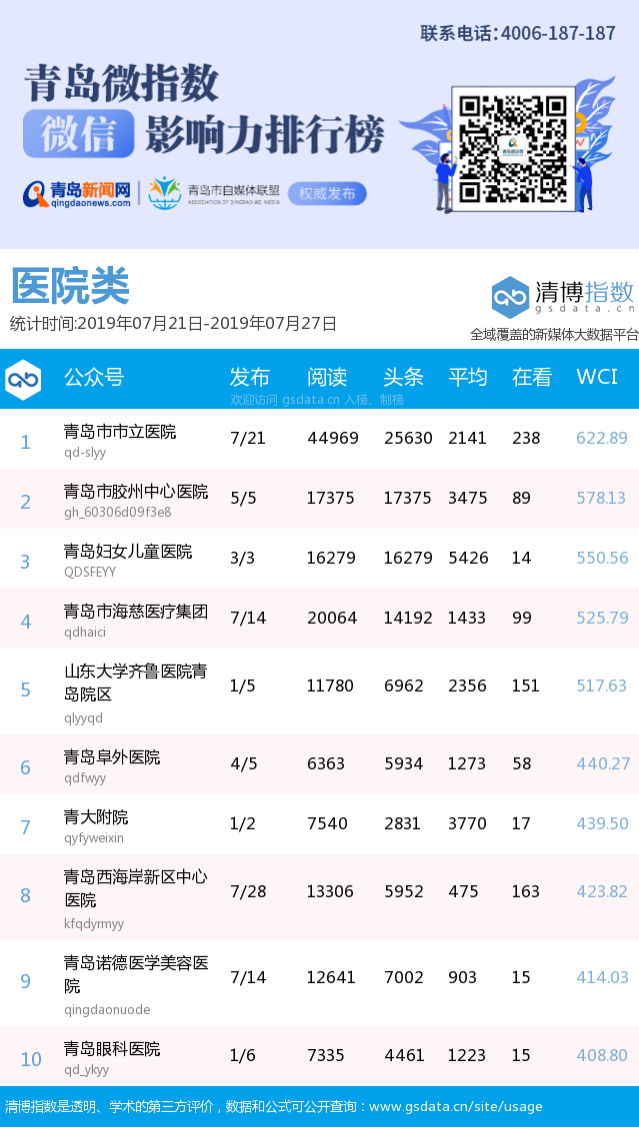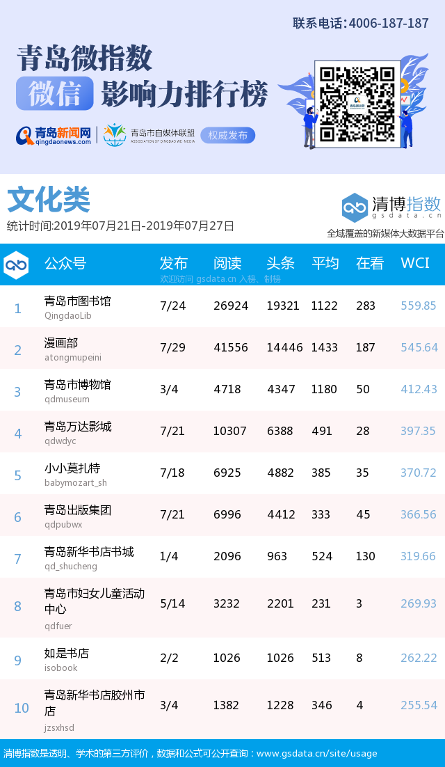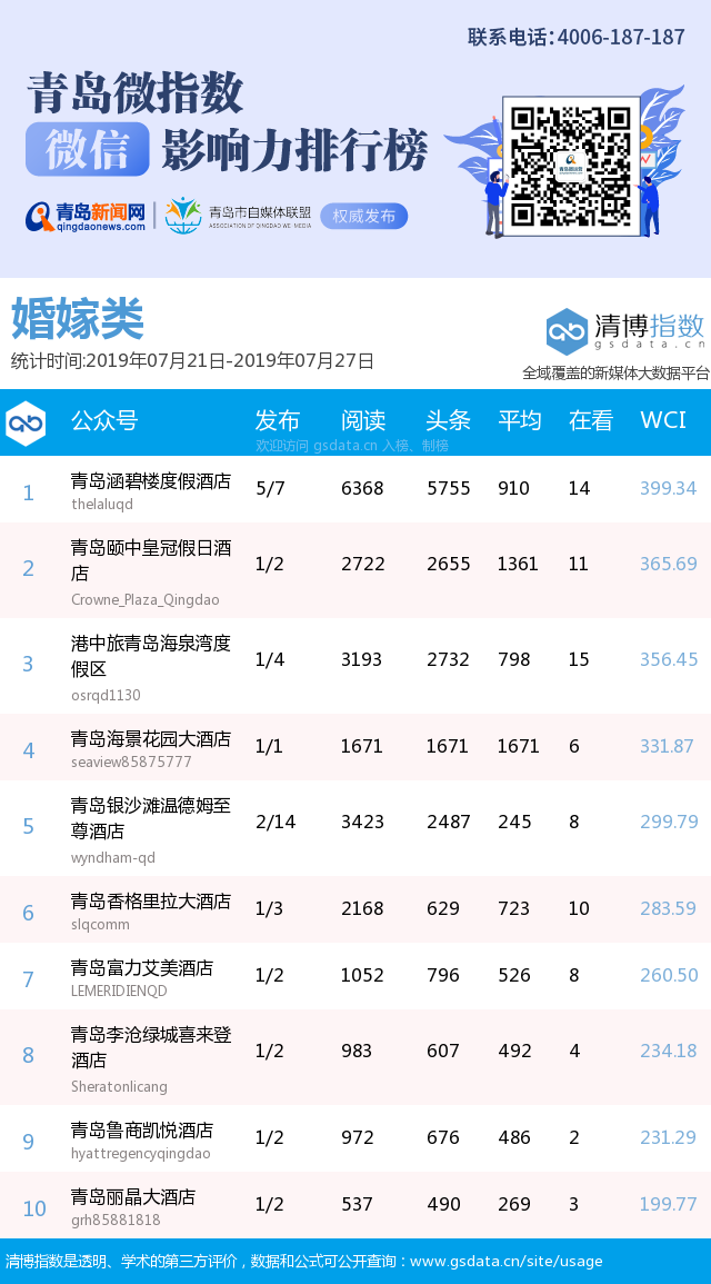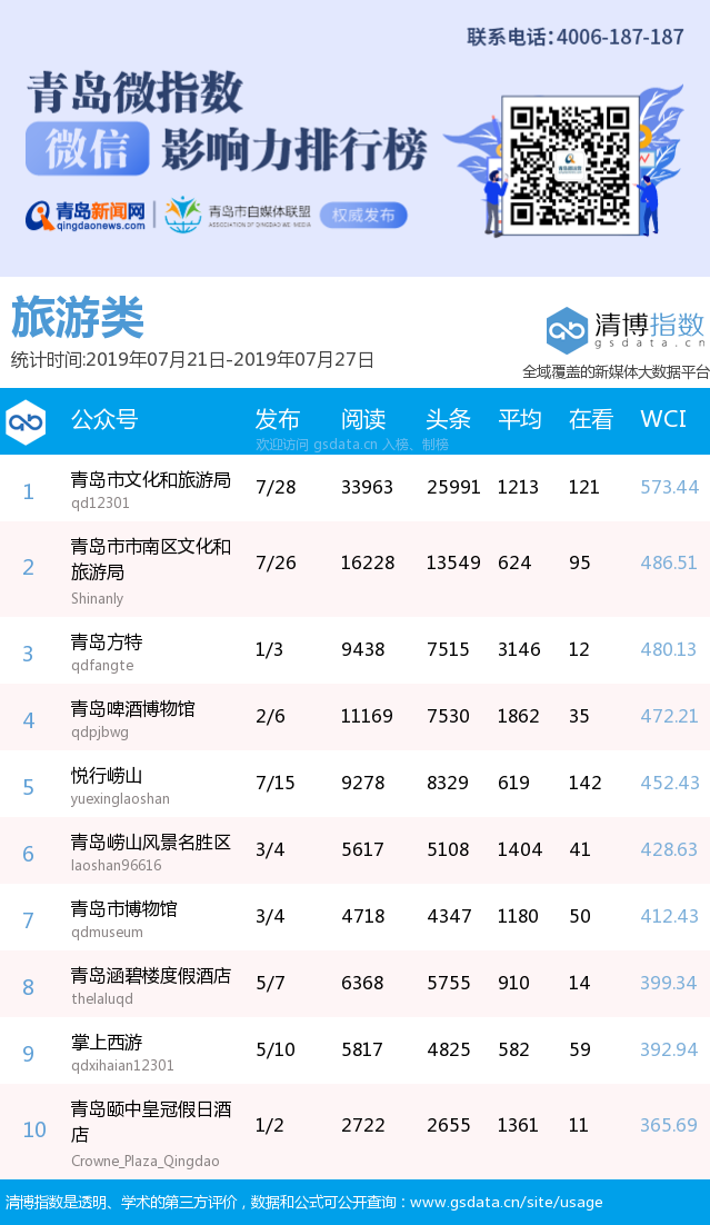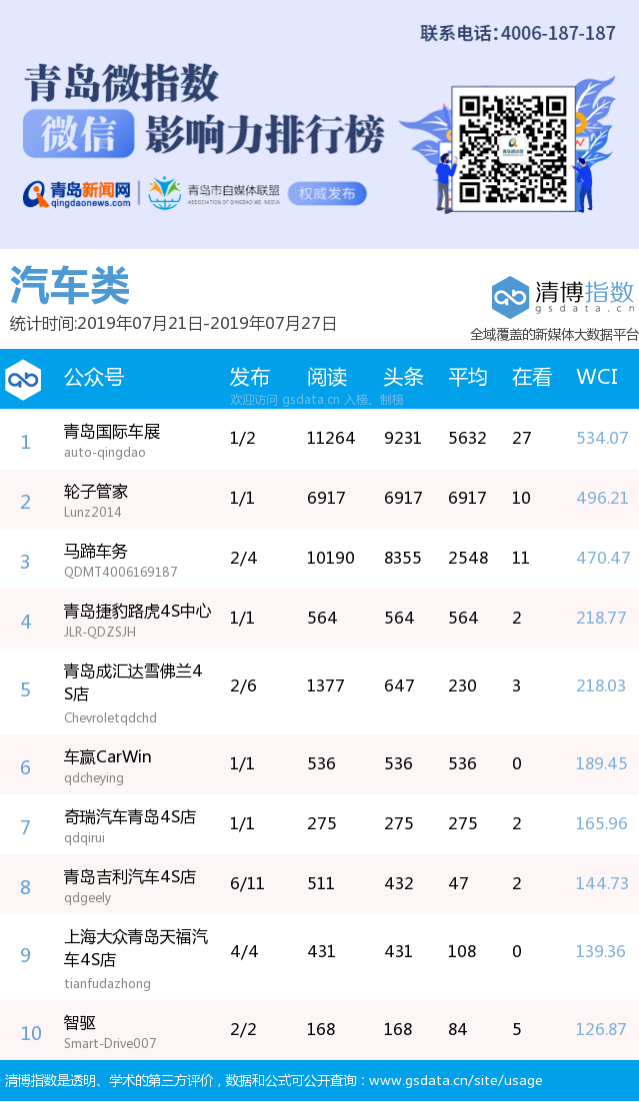 3、本次榜單收錄了青島14個行業(yè)微信公眾號,如您的賬號暫未收錄,可聯(lián)系4006-187-187。