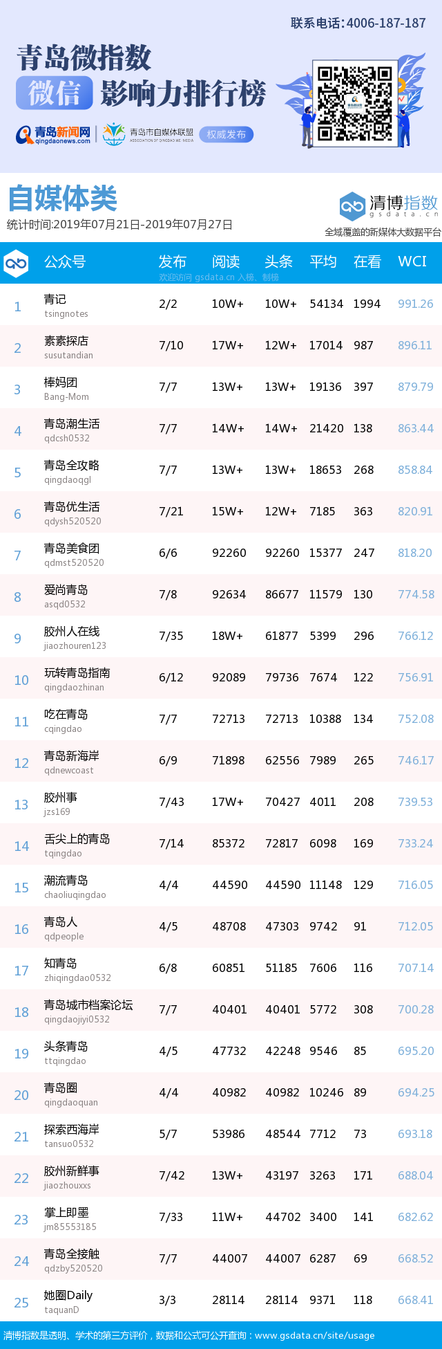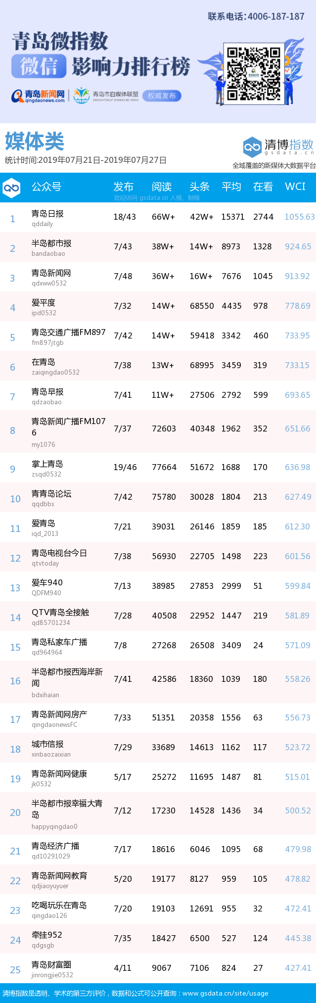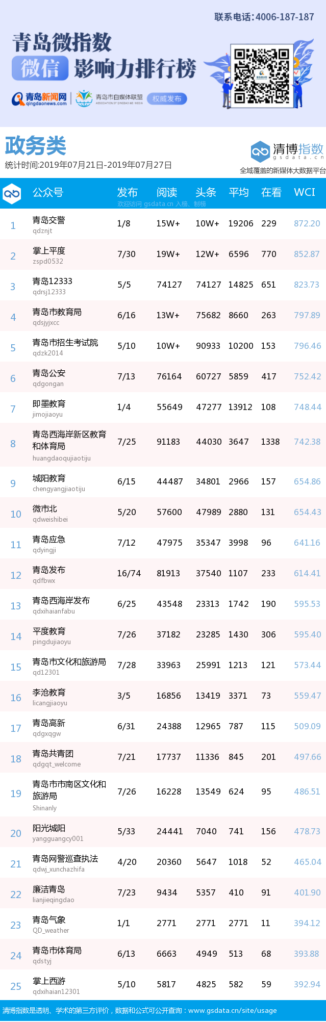 3、本次榜單收錄了青島14個行業(yè)微信公眾號,如您的賬號暫未收錄,可聯(lián)系4006-187-187。