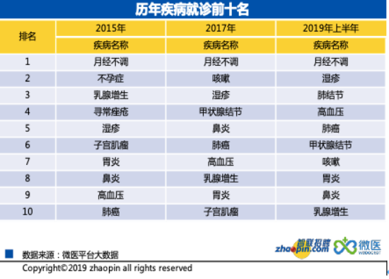 3成以上白領(lǐng)深陷健康危機(jī),認(rèn)為自身健康狀況差,從就醫(yī)數(shù)據(jù)看,不少疾病已經(jīng)成為威脅健康的頭號(hào)殺手,但在日常觀念普及上還沒有得到廣泛認(rèn)知。根據(jù)微醫(yī)平臺(tái)2015年至今患者的掛號(hào)大數(shù)據(jù)顯示,在高發(fā)病排名中,月經(jīng)不調(diào)始終排名第一,成為長期困擾白領(lǐng)的第一大疾病。這與女性的健康狀況不及男性互相印證,女性由于天然的生理特點(diǎn),在高壓力、快節(jié)奏的生活狀況下,這一問題已經(jīng)十分普遍,也困擾著她們工作生活的方方面面。