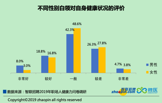 僅二成白領(lǐng)認(rèn)為身體健康狀況良好,男性優(yōu)于女性