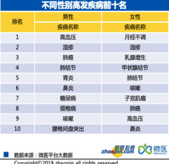 高血壓、肺部疾病對(duì)男性侵害更大,女性受婦科類疾病困擾