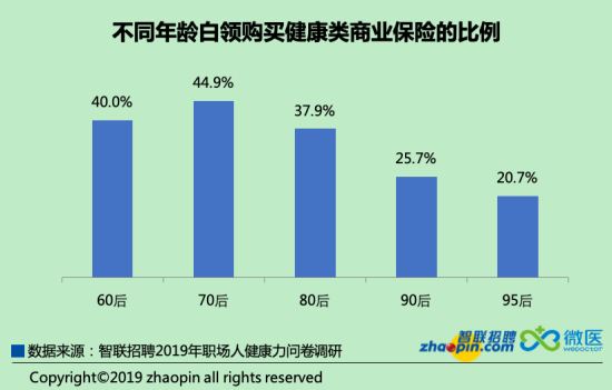購買健康保險(xiǎn)也屬于一種健康投資,在疾病來襲時(shí)多一份保障。調(diào)查顯示,僅有三成白領(lǐng)購買了健康類商業(yè)保險(xiǎn),其中中年職場人占據(jù)主力。