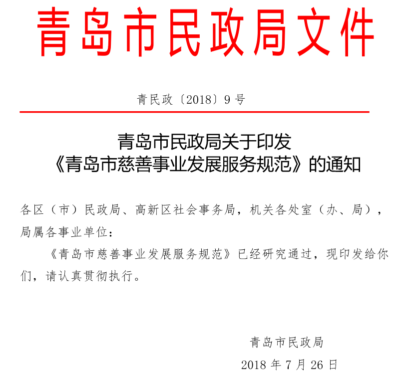 青島市民政局辦公室2018年7月26日印發(fā)