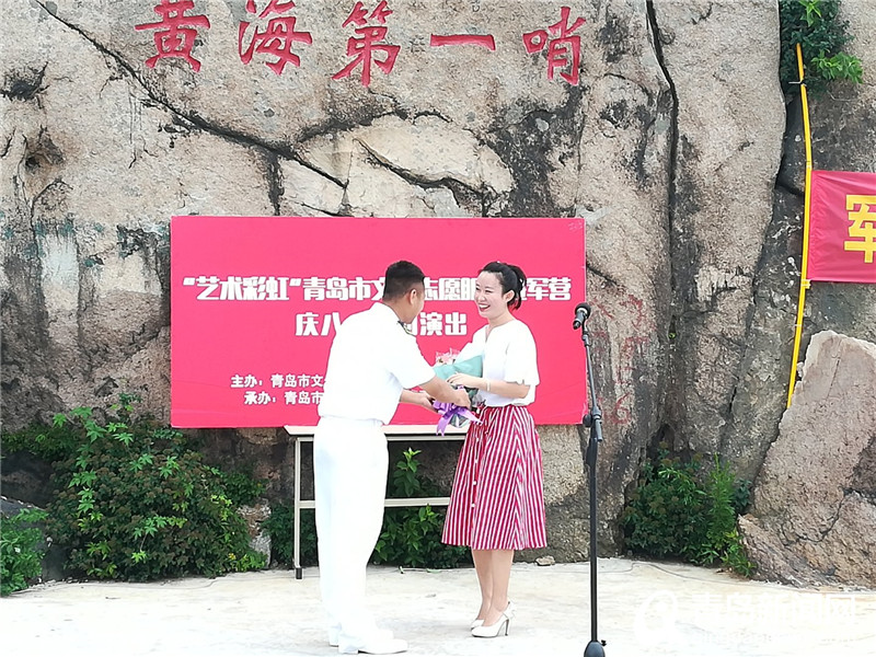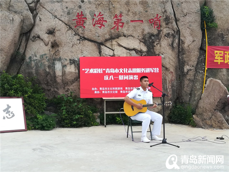 青島市文化館精心組織的由文化館業(yè)務(wù)骨干、優(yōu)秀文化志愿者以及部隊(duì)官兵共同表演的文藝演出。婉轉(zhuǎn)深情的女聲獨(dú)唱《這片海有我》、笛子獨(dú)奏《走近快活嶺》婉轉(zhuǎn)悠揚(yáng)、吉他彈唱、街舞、變臉、評書表演等節(jié)目,既有老派文藝范兒,又充滿青春正能量,精彩表演得到了官兵們的熱烈掌聲,每個(gè)人臉上都洋溢著幸福的笑容。