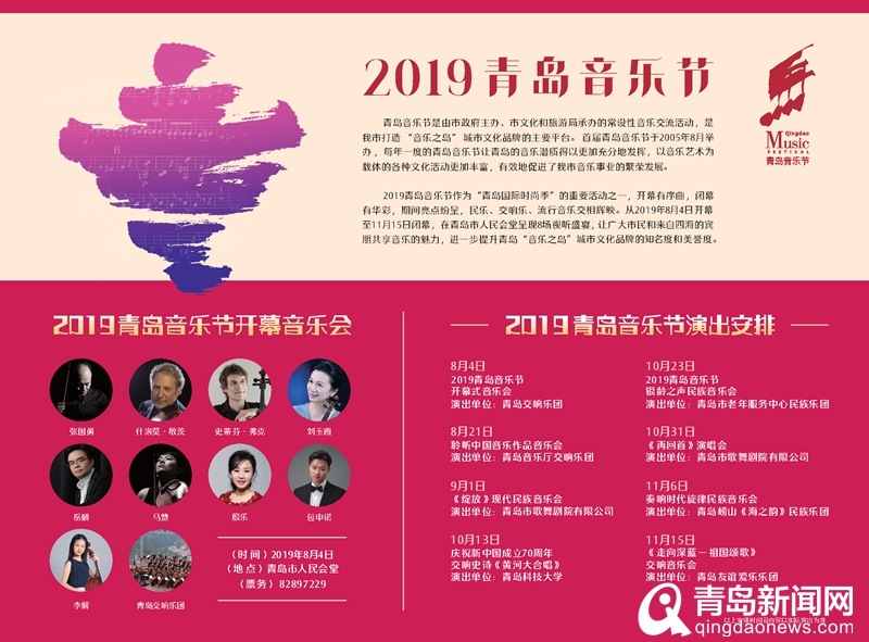 2019青島音樂節(jié)作為“青島國際時(shí)尚季”的重要活動之一,從2019年8月開幕至11月閉幕,在青島市人民會堂呈現(xiàn)8場視聽盛宴,讓來自四海的賓朋共享音樂的魅力。