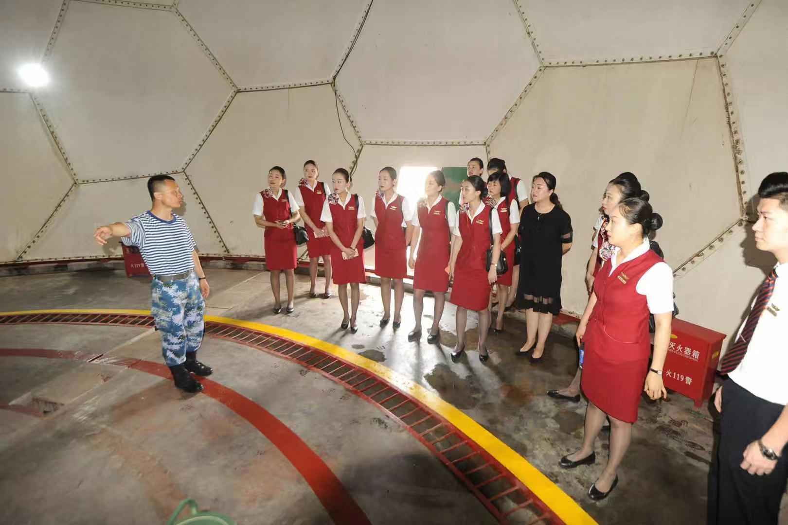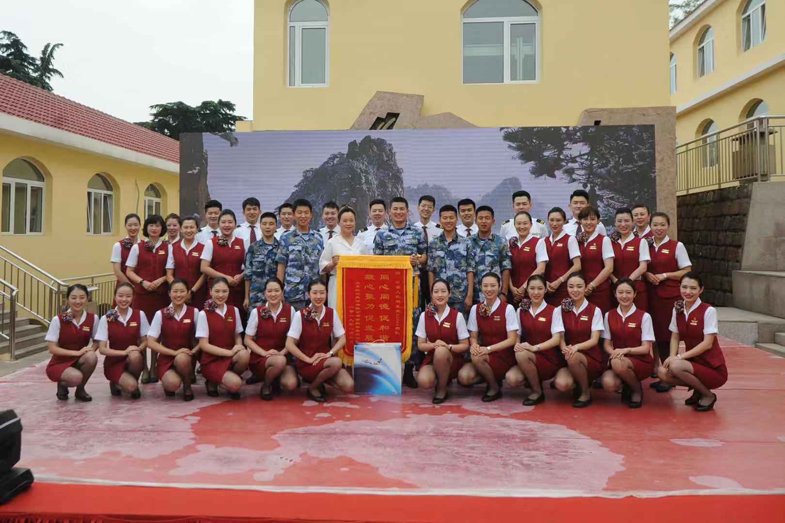 7月31日上午,在八一建軍節(jié)來臨之際,山東航空公司客艙部副總經(jīng)理華榜榜帶領魯雁乘務員代表來到海軍92664部隊,慰問官兵參觀軍營。