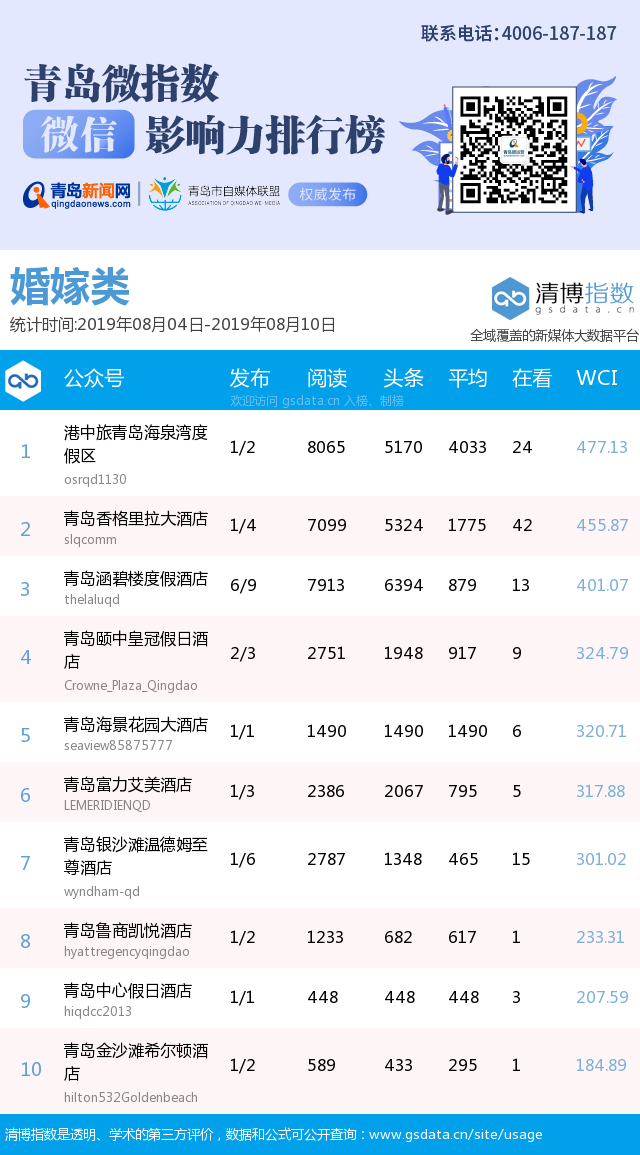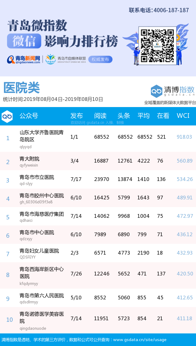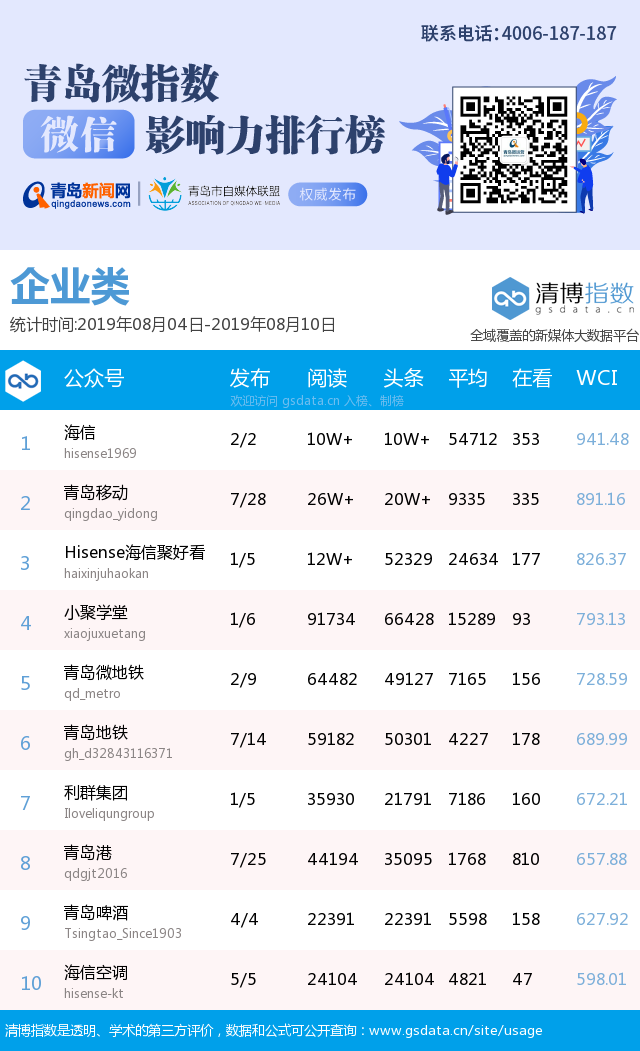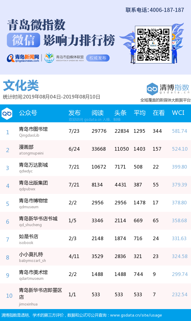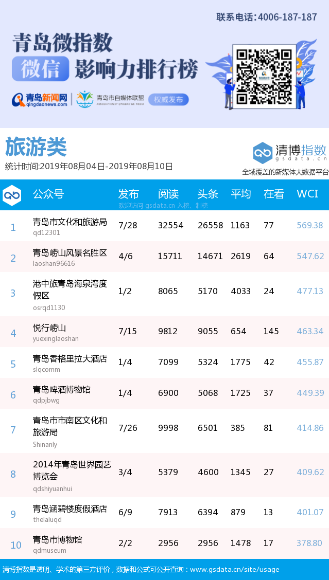 3、本次榜單收錄了青島14個行業(yè)微信公眾號,如您的賬號暫未收錄,可聯(lián)系4006-187-187。