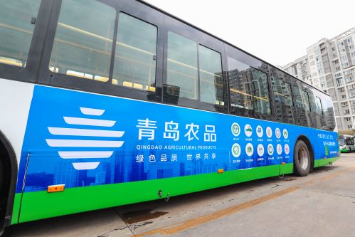 公交車車體上的青島農(nóng)品標(biāo)識和品牌理念。柳棟/攝