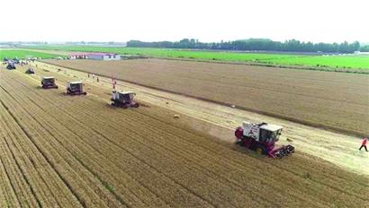 記者在平度市新河鎮(zhèn)庚家村看到,由青島平度金豐公社農(nóng)業(yè)服務(wù)有限公司托管的200余畝小麥迎來(lái)收割,聯(lián)合收割機(jī)轟隆隆地在田內(nèi)穿梭,將金黃的小麥脫粒后裝車?!胞溋o枬M,長(zhǎng)勢(shì)很不錯(cuò)。”農(nóng)戶庚志勇和幾位村民一邊查看小麥長(zhǎng)勢(shì)一邊介紹說(shuō),他家的12畝小麥去年加入了金豐公社,購(gòu)買了土地全托管服務(wù),除澆水外所有農(nóng)活都由公司的工作人員來(lái)做,他當(dāng)起了“甩手掌柜”?!扒皫滋旃纹鹆舜箫L(fēng),有些鄰居的麥子被吹倒了,公司幫我種的這些一點(diǎn)事沒(méi)有,很堅(jiān)挺?!备居抡f(shuō),種了大半輩子地的他現(xiàn)在悠哉悠哉當(dāng)起了“地主”,“把地交給公司種,自己省心省事也省工,光等收糧食就行?!?/p>