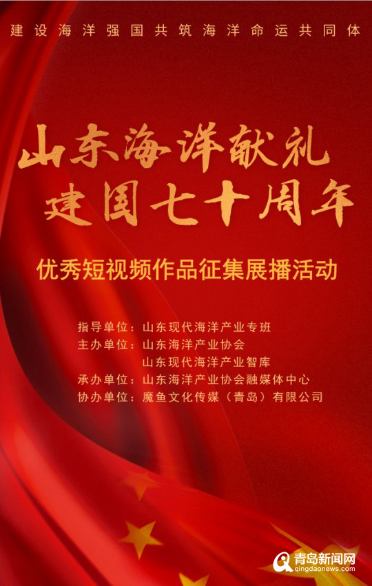青島新聞網(wǎng)9月2日訊(記者 孫志文)講好海洋故事,助力海洋強(qiáng)國(guó)。在中華人民共和國(guó)即將迎來70華誕之際,由省現(xiàn)代海洋產(chǎn)業(yè)專班指導(dǎo)、山東海洋產(chǎn)業(yè)協(xié)會(huì)及山東現(xiàn)代海洋產(chǎn)業(yè)智庫(kù)承辦的“山東海洋獻(xiàn)禮建國(guó)70周年”為主題的優(yōu)秀短視頻征集、展播活動(dòng)于9月2日正式啟動(dòng),活動(dòng)將持續(xù)到10月10日。本次活動(dòng)征集的短視頻將全方位、多層次、高密度的向全社會(huì)展示近年來山東海洋強(qiáng)省建設(shè)成效,引導(dǎo)關(guān)注藍(lán)色領(lǐng)軍人才,充分發(fā)揚(yáng)中國(guó)夢(mèng)踐行者的深藍(lán)精神。