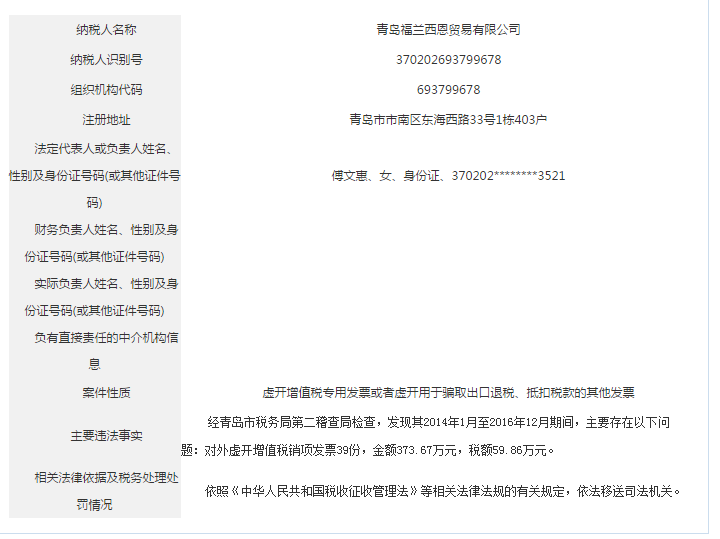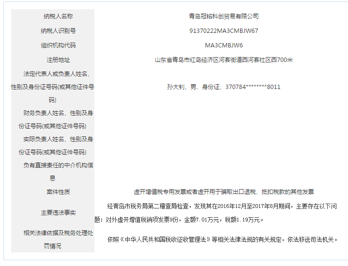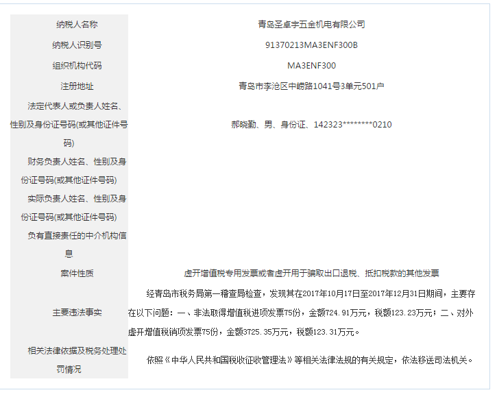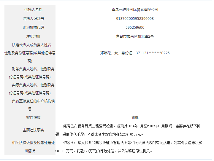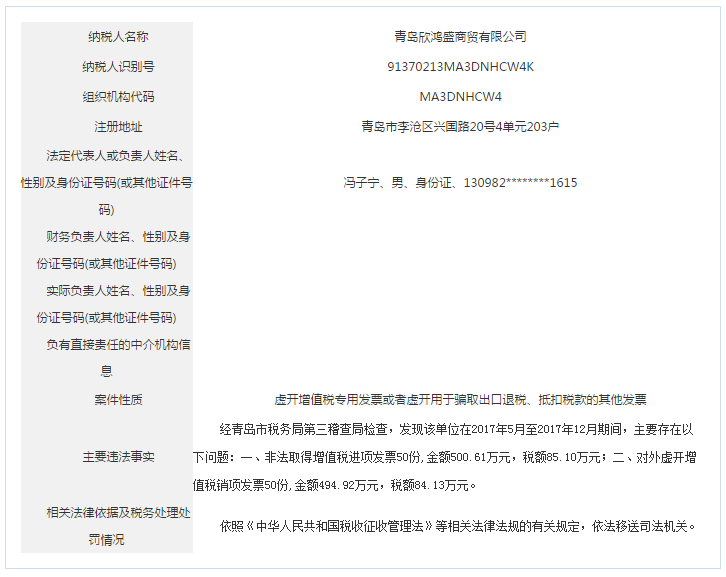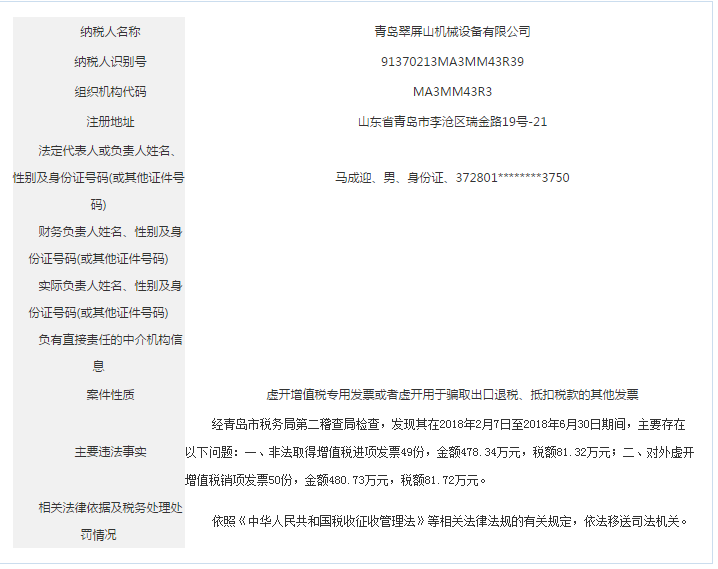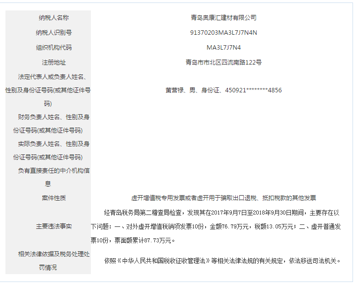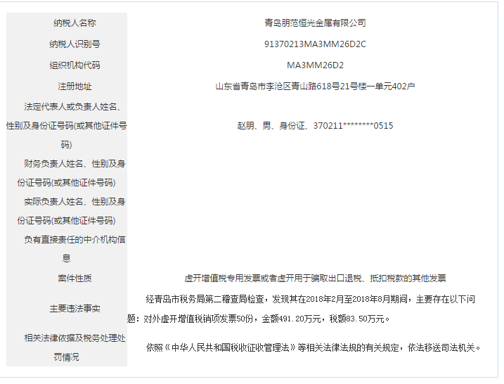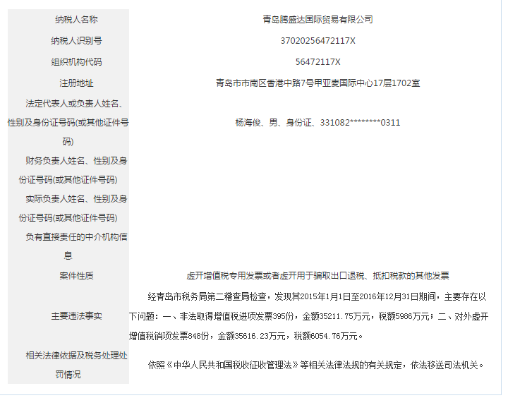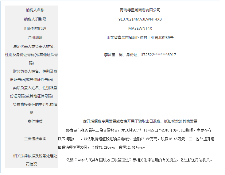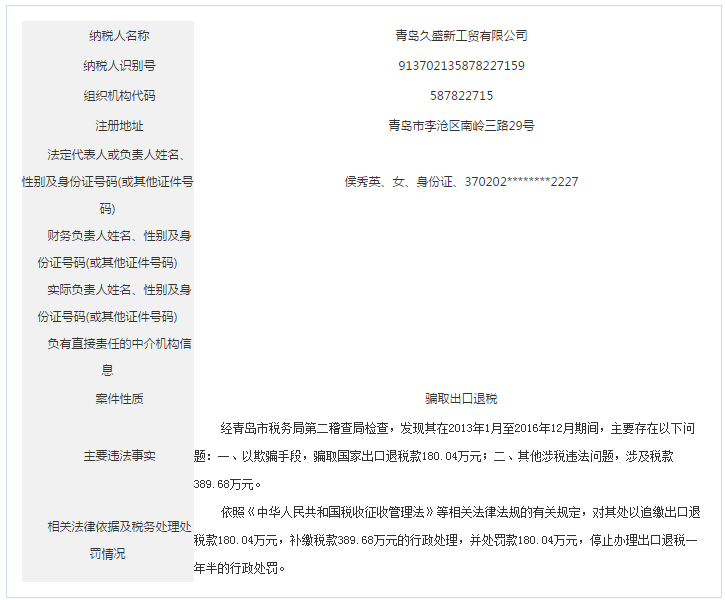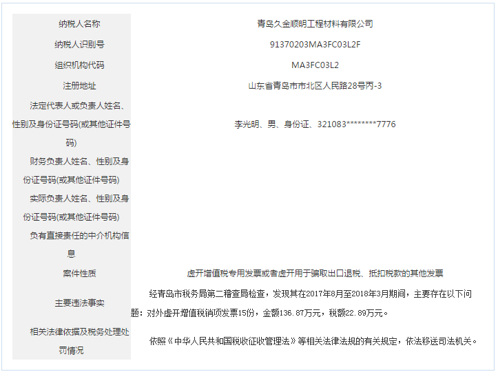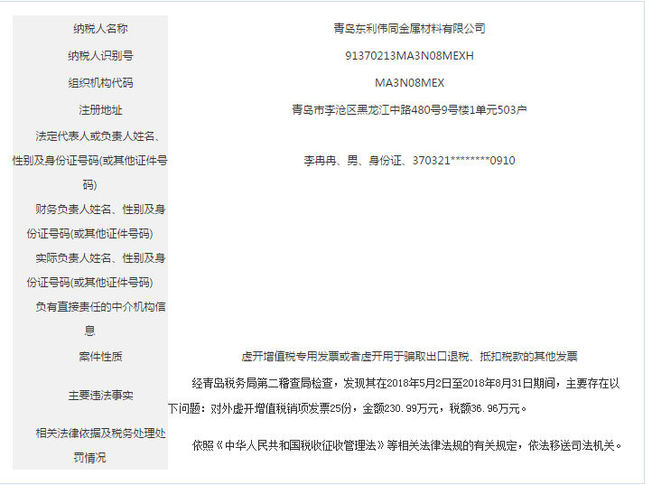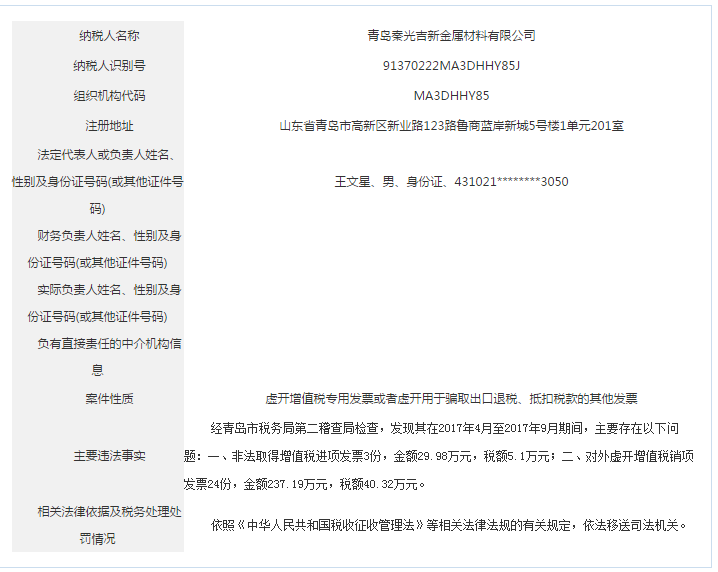 青島稅務(wù)局公告青島鑫寶來鋼鐵有限公司等59起重大稅收違法案件