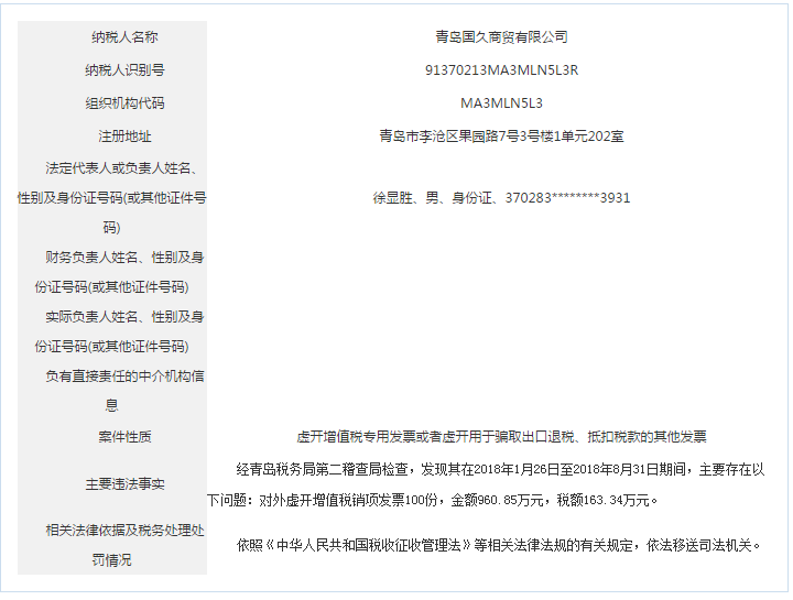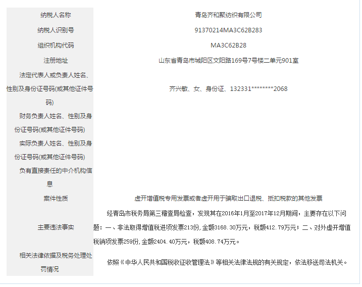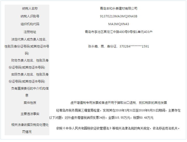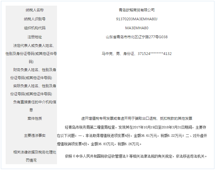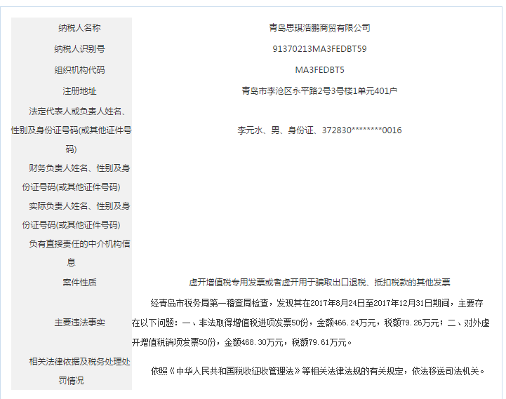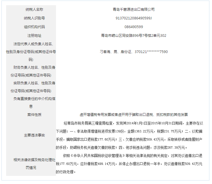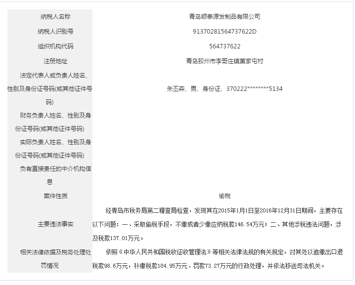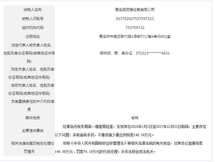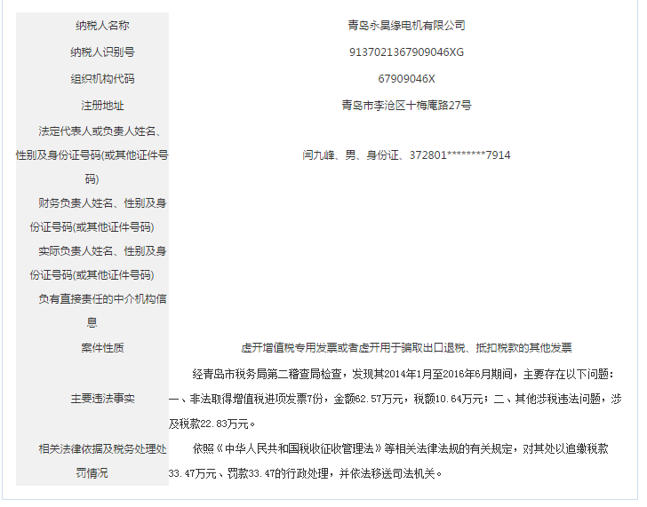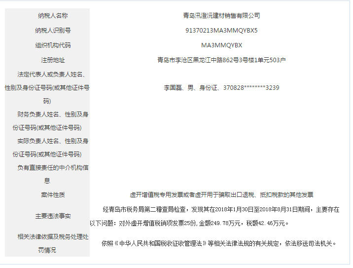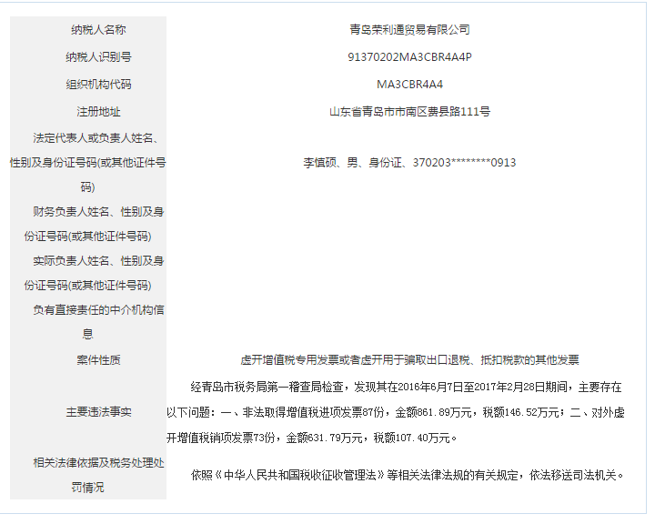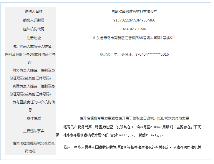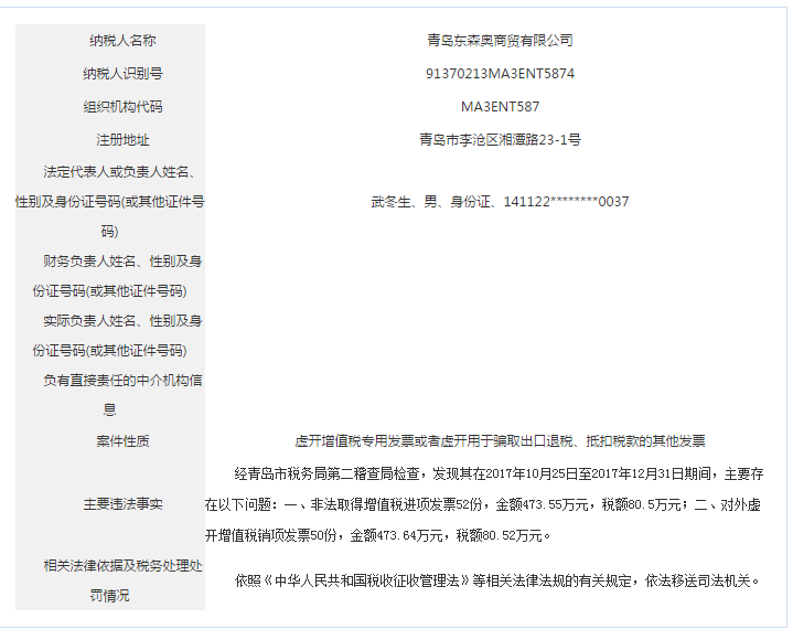 青島稅務(wù)局公告青島鑫寶來鋼鐵有限公司等59起重大稅收違法案件
